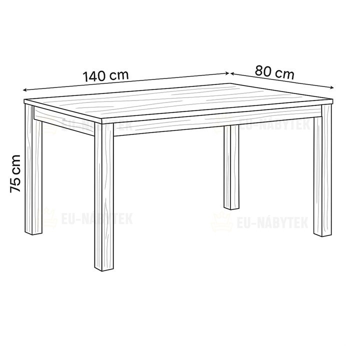 Jídelní stůl 140x80x75, masiv dub bílý, povrchová úprava olejem, nohy 8x8 cm