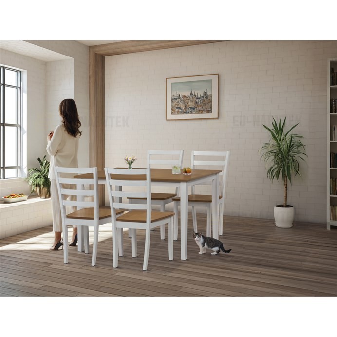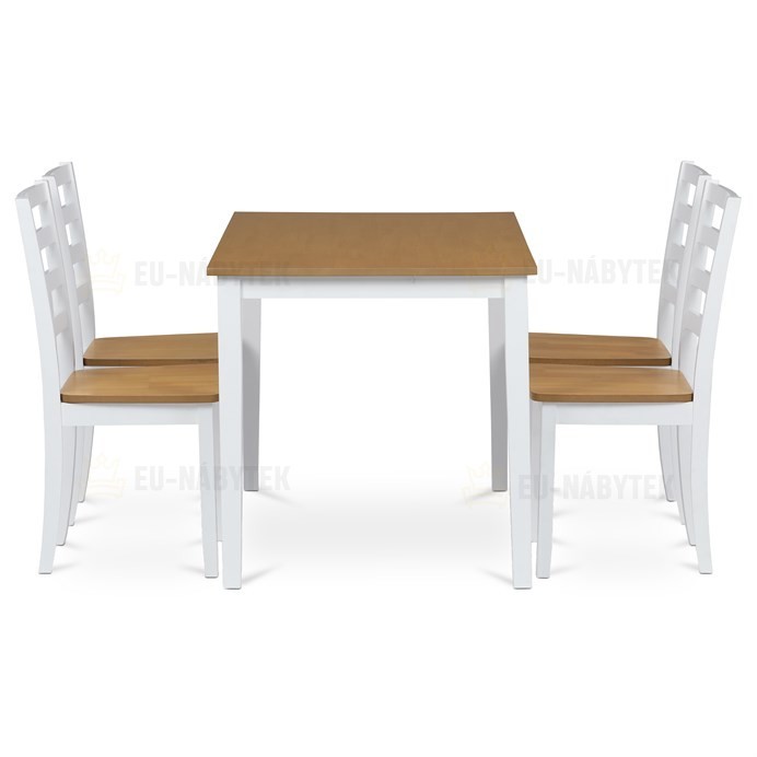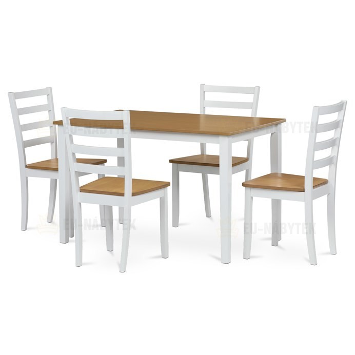 Vneste do svého domova harmonii s elegantním jídelním setem značky Autronic. Kombinace bílých masivních nohou a desky v přírodním dubovém dekoru přidá vašemu interiéru moderní a svěží vzhled. Set zahrnuje stůl a čtyři židle, které nabízí pohodlí a stabilitu díky preciznímu zpracování z MDF…
