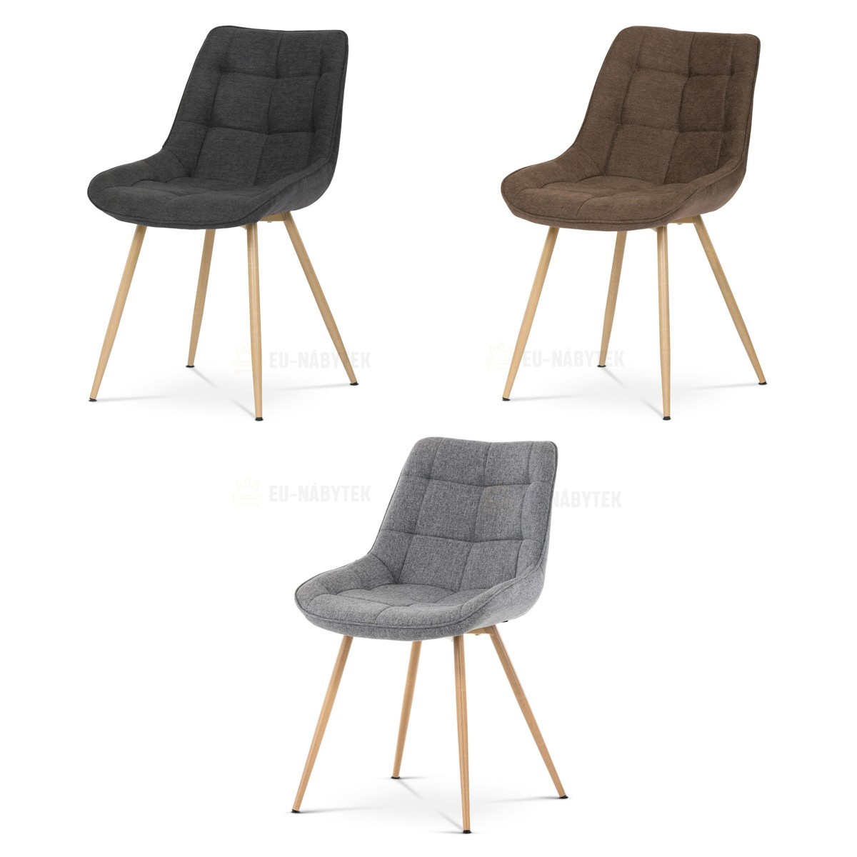 Designová skořepinová jídelní židle je čalouněna černou látkou s výrazným prošitím sedací části i části určené k opření. Sedací část je zaoblená a má vyvýšené boky, plynule přecházející do opěráku. Polstrování je z kvalitní PU pěny. Čtyřnohá kovová podnož je v 3D dekoru dub. Nohy jsou kruhového…