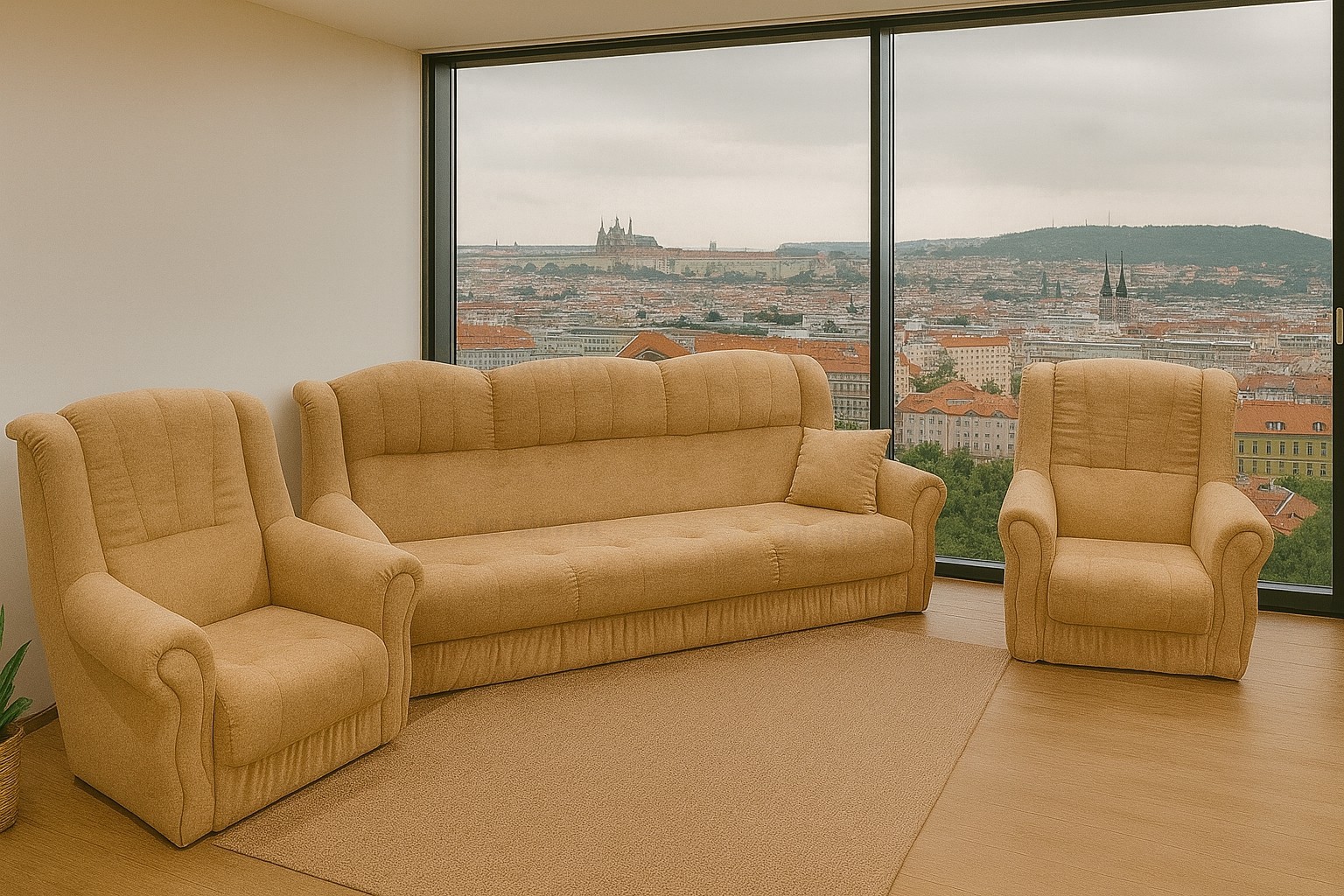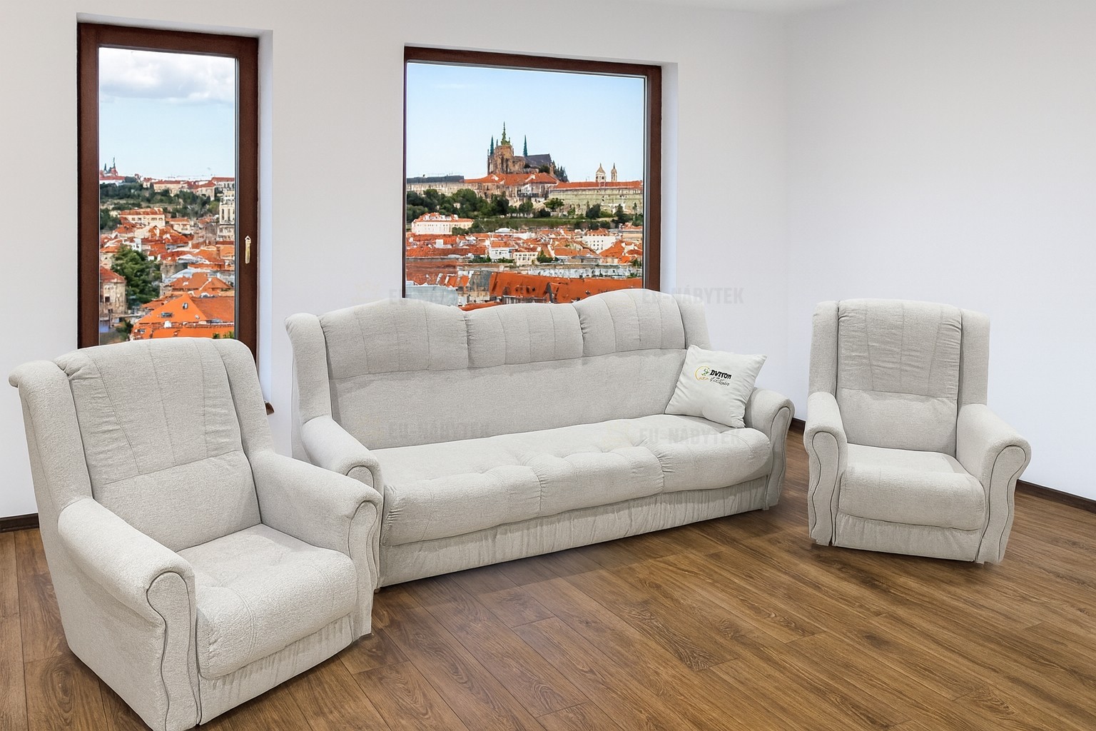 Pohodlná a prostorově nenáročná sedací souprava Amanda, která garantuje vysokou kvalitu provedení a dlouhou životnost. Kvalitní sezení zaručuje vysokoelastická PUR pěna T30 včetně čalounických podpůrných popruhů. Sedací souprava má jednoduchý systém rozkládání včetně úložného prostoru, který naleznete v hlavní části po rozkladu. Souprava se skládá ze dvou křesel (85x80x94cm) a pohovky (220x88x94cm), která po rozložení disponuje spací plochou 186x125cm. Čalouněná je kvalitní látkou Alfa 19. Polštářek není v ceně sestavy.