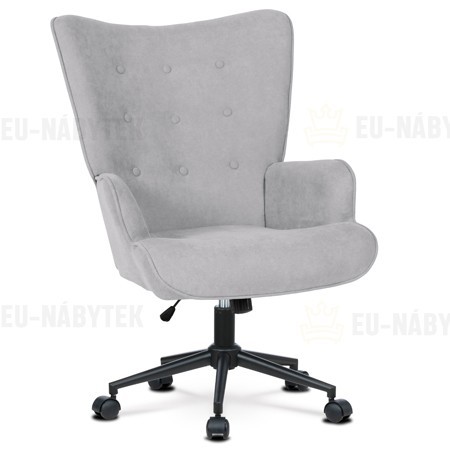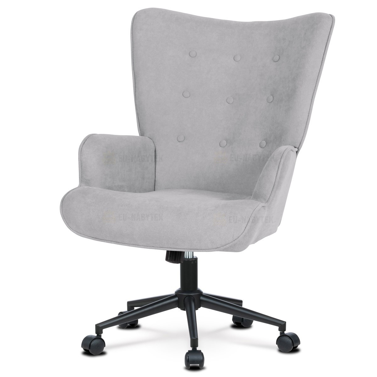 Křeslo "ušák", potah stříbrná látka, kovový kříž