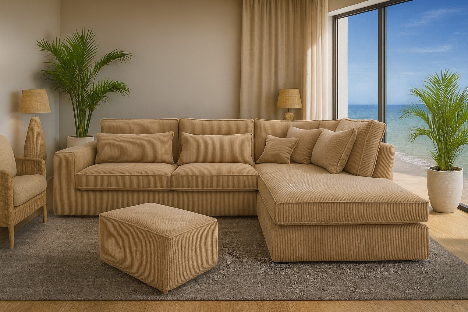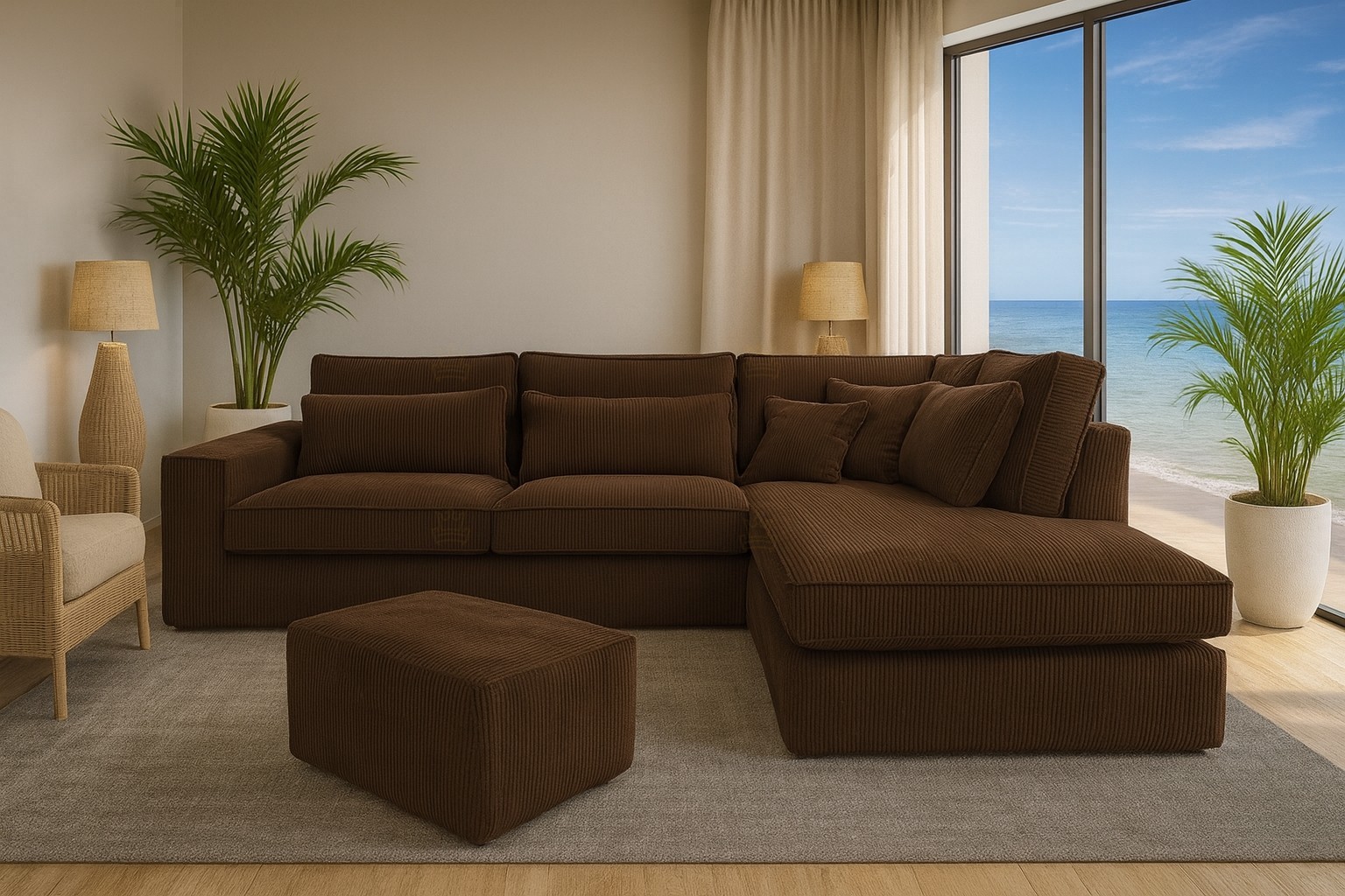 Praktická moderní rohová sedačka Corina, která nadchne i ty nejnáročnější zákazníky. Pohodlné sezení zaručují pružiny faliste a vysoce flexibilní kvalitní PUR pěna T30. Sedačka obsahuje spoustu polštářů, díky kterým si dopřejete pohodlný odpočinek. Velkou výhodou jsou odnímatelné povlaky, které lze kdykoliv vyprat. Sedačka je celočalouněná. Lze ji tedy umístit do prostoru. Celkové rozměry sedačky jsou 314x224x89cm. Výška sedu je 48cm. K sedačce je prostorný designový taburet Alisimo, který nadchne především svými rozměry, které jsou 90x42x55cm. Kvalitní sezení zaručuje díky vysokoelastické PUR pěně. Taburet nemá úložný prostor. Čalounění je kvalitní látkou Lincoln 39.