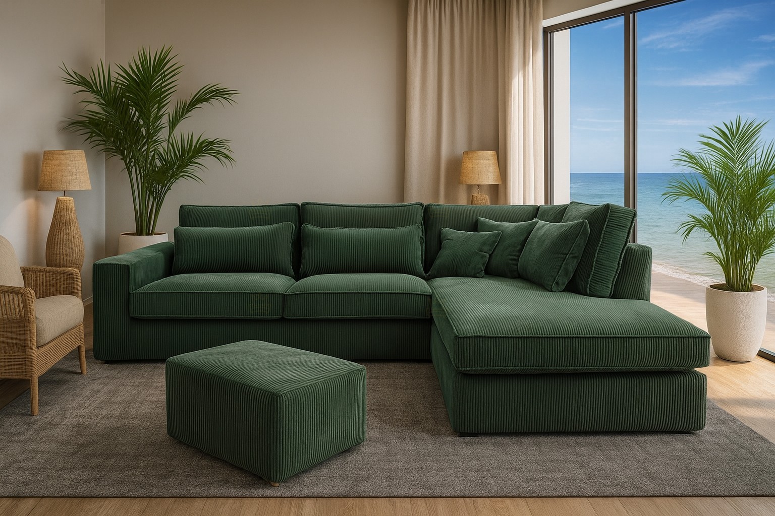 Praktická moderní rohová sedačka Corina, která nadchne i ty nejnáročnější zákazníky. Pohodlné sezení zaručují pružiny faliste a vysoce flexibilní kvalitní PUR pěna T30. Sedačka obsahuje spoustu polštářů, díky kterým si dopřejete pohodlný odpočinek. Velkou výhodou jsou odnímatelné povlaky, které lze kdykoliv vyprat. Sedačka je celočalouněná. Lze ji tedy umístit do prostoru. Celkové rozměry sedačky jsou 314x224x89cm. Výška sedu je 48cm. K sedačce je prostorný designový taburet Alisimo, který nadchne především svými rozměry, které jsou 90x42x55cm. Kvalitní sezení zaručuje díky vysokoelastické PUR pěně. Taburet nemá úložný prostor. Čalounění je kvalitní látkou Lincoln 29.
