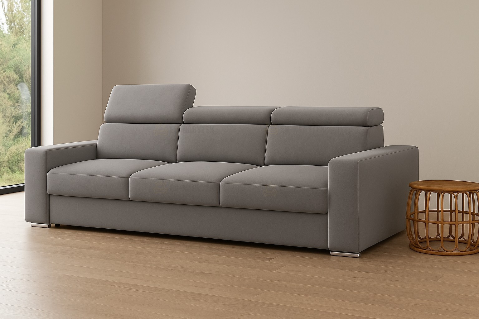 Moderní trojsedák Beluro je ideální pro ty, kteří ocení komfort a pohodlí. Tkanina vysoké kvality, masivní pevná kostra, pružinové jádro Faliste s kvalitní PUR pěnou T35 zaručují komfortní posezení. Výhodou je možnost rozkladu pro příležitostné přespání. Plocha po rozložení je o rozměru 125x191cm. Velkou předností této pohovky jsou polohovatelné záhlavníky, díky kterým si dopřejete ten nejlepší odpočinek. Výška sedu je 44cm. Je čalouněná kvalitní látkou Matt Velvet 85. V nabídce i v jiném barevném provedení.