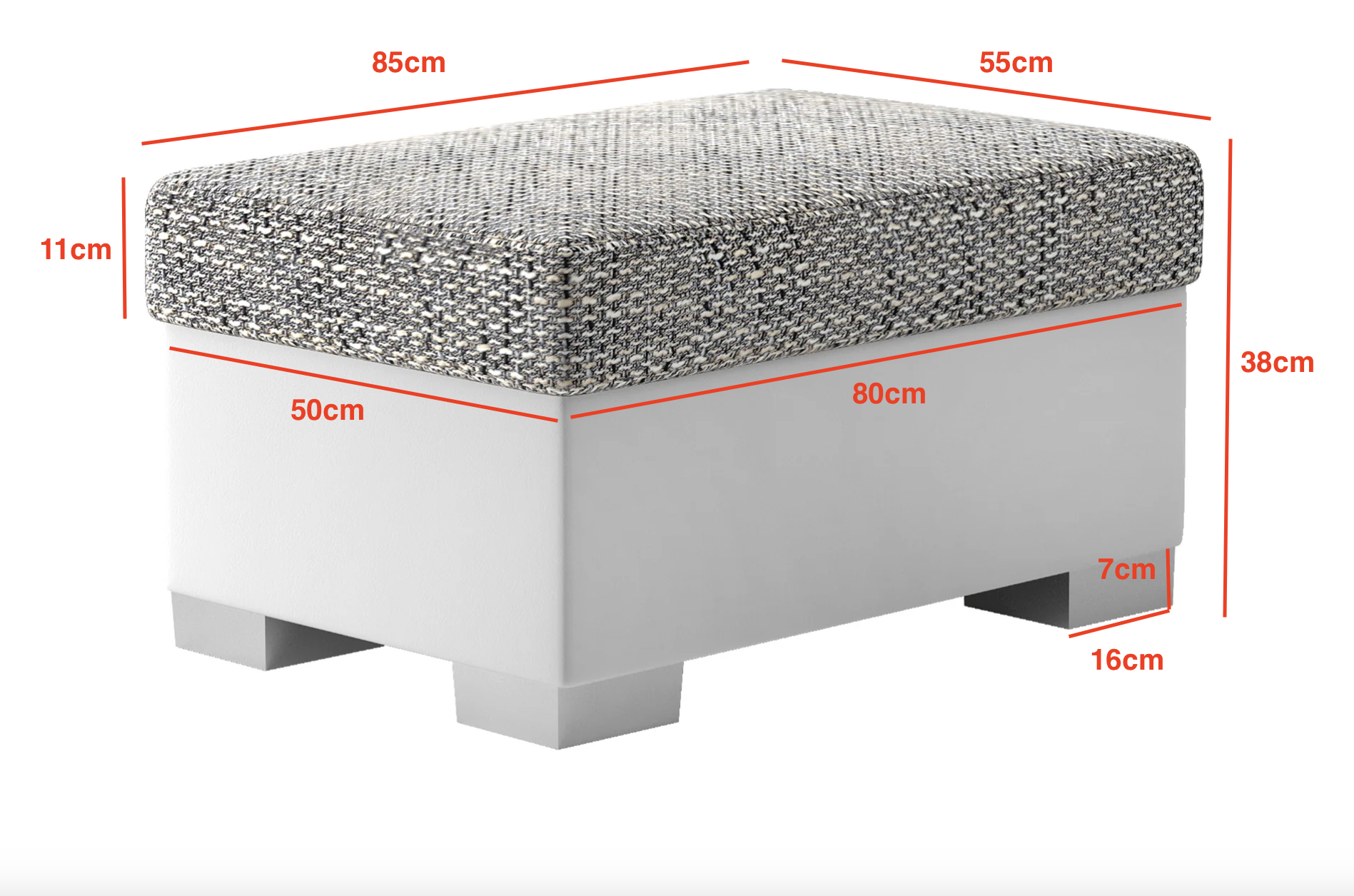 Moderní taburet ROKO je v jednoduchém osvědčeném designu v obdelníkovém tvaru. Pohodlné sezení zaručuje vysokoelastická PUR pěna. Nohy jsou vyrobeny z odolného plastu v stříbrném provedení. Rozměry taburetu jsou 85x55x38cm. Výška nožek je 7cm. Čalouněná je v kombinaci látek Berlin 03 a bílá ekokůže Soft 17. V nabídce i v jiném barevném provedení.