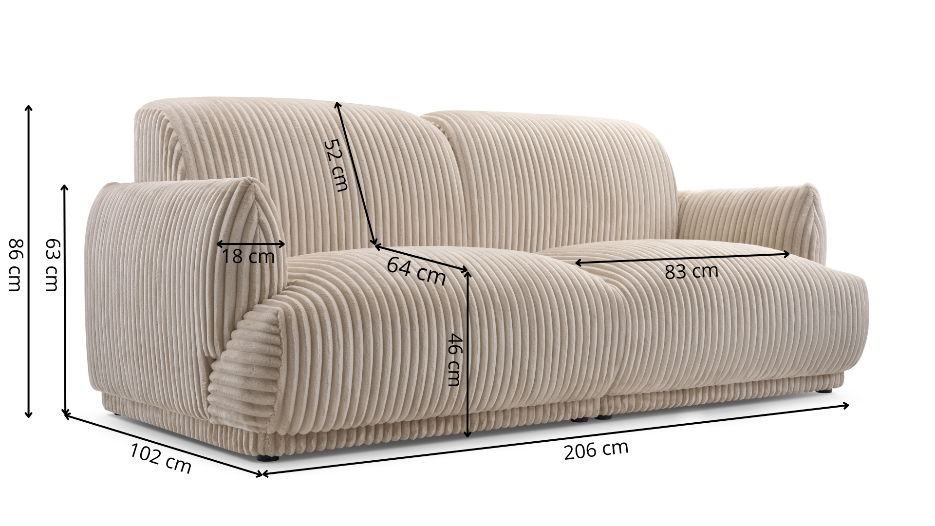 Pohovka KARINA spojuje moderní nadčasový design s maximálním pohodlím. Její výrazný žebrovaný povrch dodává jedinečný vzhled, zvyšuje vizuální měkkost a dělá z ní nepřehlédnutelný prvek každého obývacího pokoje. Díky měkkému čalounění a příjemné textuře látky je ideální pro každodenní odpočinek, sledování televize i posezení s rodinou a přáteli.