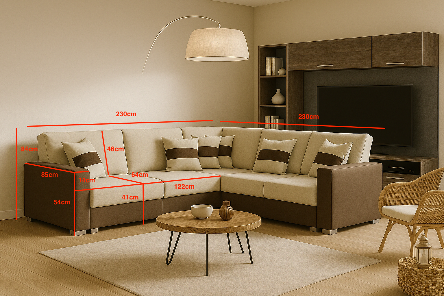 Rozkládací rohová sedačka NADO 230x230 béžová / hnědá
