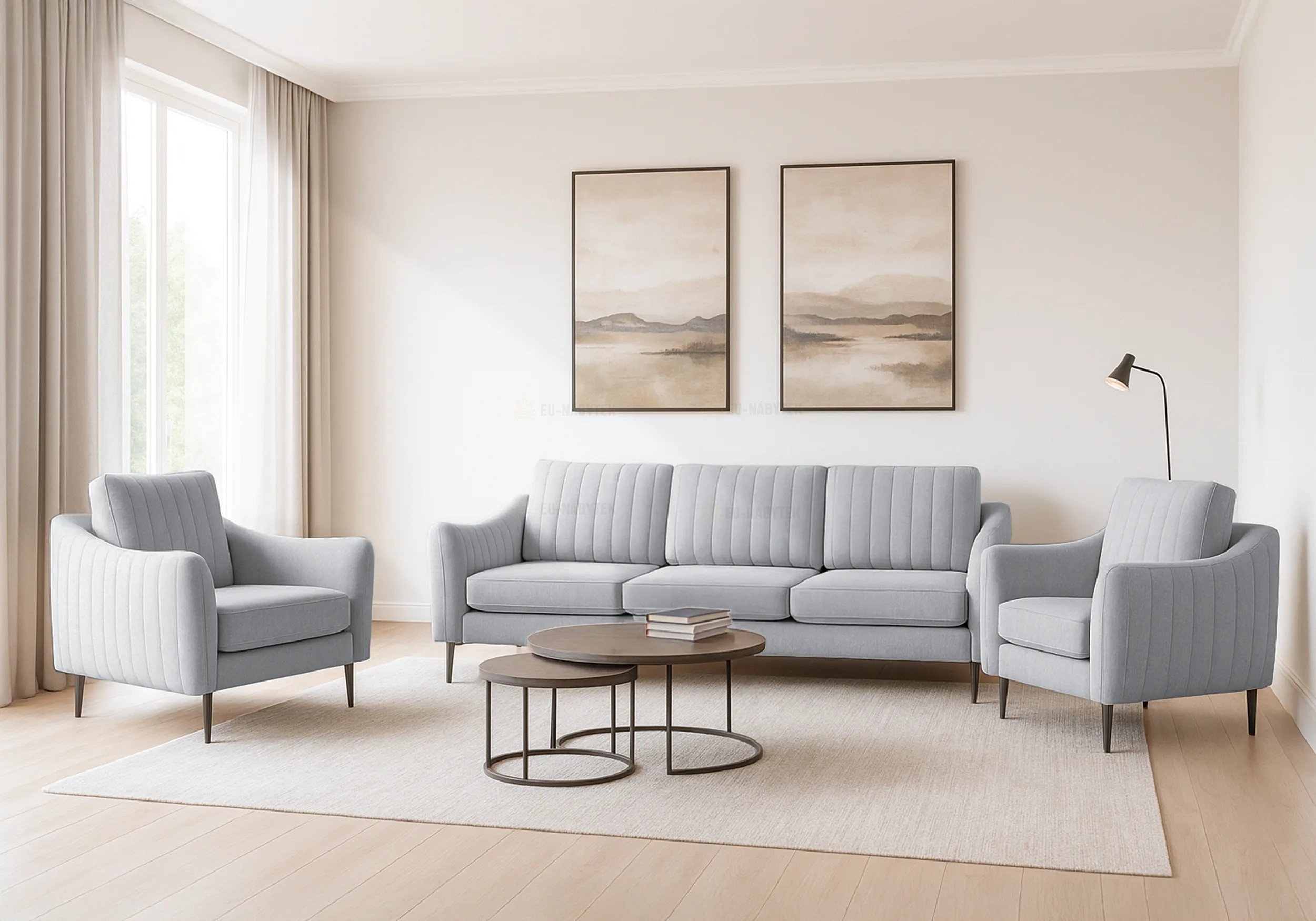 Objevte eleganci a komfort v podobě sedací soupravy CORIDO 3+1+1, která kombinuje moderní design, kvalitní čalounění a praktické řešení pro každodenní používání. Tato sedací souprava obsahuje prostornou pohovku a dvě pohodlná křesla, takže vytvoří ideální místo pro relaxaci i společné chvíle s rodinou. Souprava Corido zaujme svými čistými liniemi, nadčasovým tvarem a elegantním vzhledem, díky čemuž perfektně zapadne do moderního interiéru. Velurový potah v odstínu Cloud 74 působí luxusně, je příjemný na dotek a snadno se udržuje. Čalouněné prvky poskytují vyváženou oporu a maximum pohodlí i při delším sezení. Díky pečlivému zpracování, použití kvalitních materiálů a ergonomickému tvaru je tato sedací souprava skvělou volbou pro každodenní relax. Pohovka a dvě křesla nabídnou dostatek místa až pro 5 osob, takže je souprava ideální pro rodiny i návštěvy.
