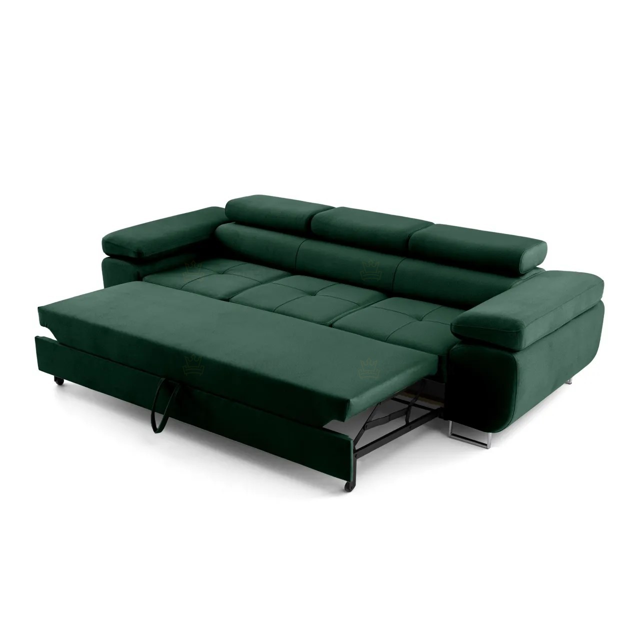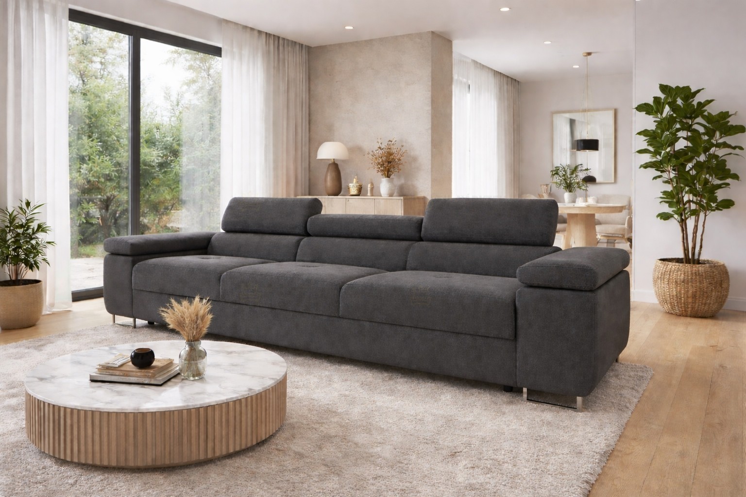 Moderní trojsedák Vilda je ideální pro ty, kteří ocení komfort a pohodlí. Tkanina vysoké kvality, masivní pevná kostra, pružinové jádro Faliste s kvalitní PUR pěnou T35 zaručují komfortní posezení. Výhodou je možnost rozkladu pro příležitostné přespání. Plocha po rozložení je o rozměru 125x195cm. Velkou předností jsou polohovatelné opěrky zad, které umožňují přizpůsobit sezení přesně podle vašich potřeb. Čisté linie doplněné kovovými nožkami působí lehce a moderně, díky čemuž se pohovka skvěle hodí do současných i minimalistických obývacích pokojů. Výška sedu je 43cm. Je čalouněná kvalitní látkou Whisper 19. V nabídce i v jiném barevném provedení.