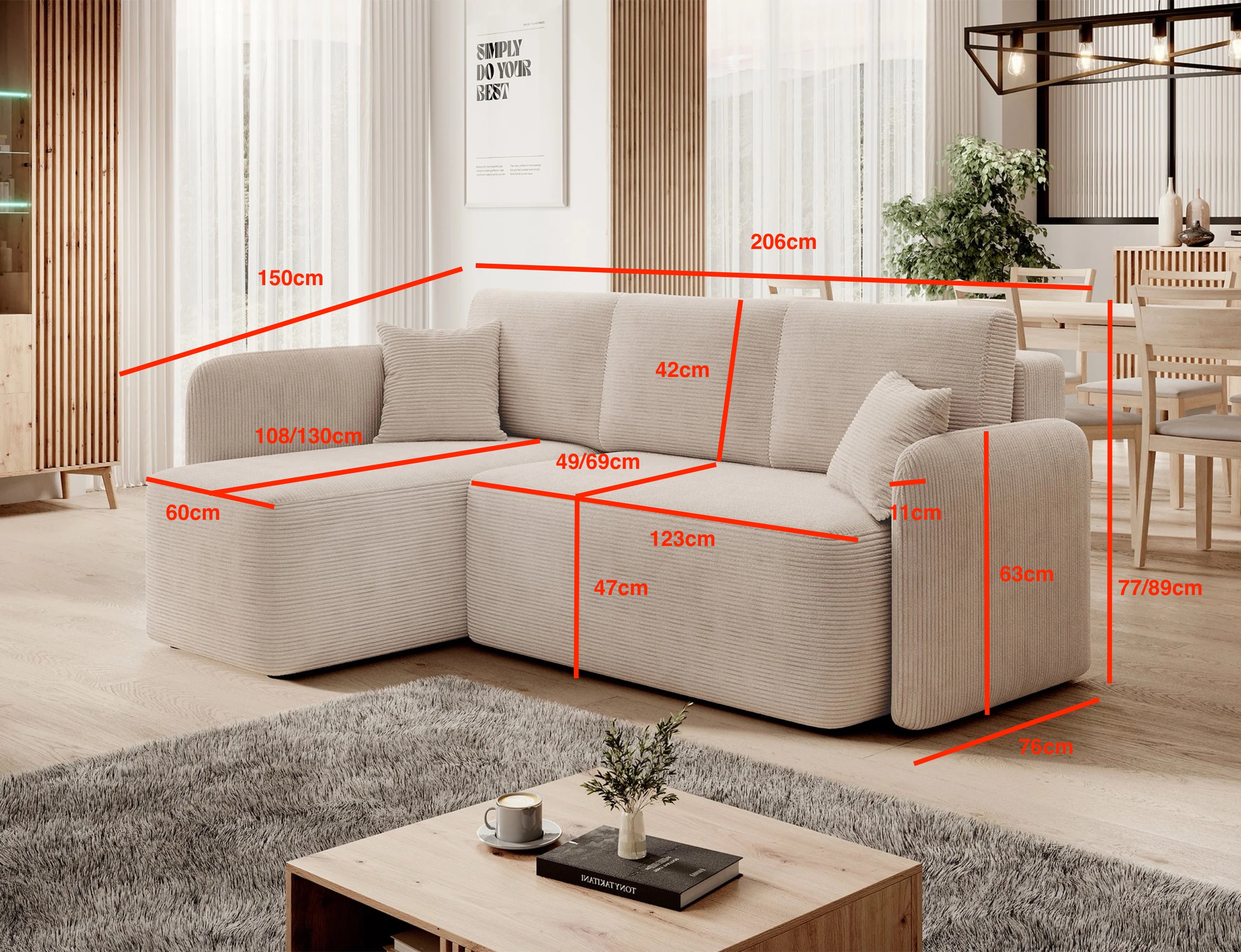 Tato elegantní modulární sedačka je ideální volbou pro moderní a minimalistické interiéry. Díky jednoduchým liniím, nízkému profilu a měkkému strukturovanému čalounění působí nadčasově a vzdušně. Sedačka nabízí vysoký komfort sezení i relaxace a zároveň skvěle zapadne do otevřených obytných prostor. Kvalitní výplň zajišťuje dlouhou životnost a pohodlí při každodenním používání. Jedná se o pružiny faliste a harmonickou směs dvou typů pěny HR a T30. Pěna HR s vysokou hustotou zaručuje odolnost a dlouhodobé pohodlí. Pěna T30 dodává sedačce měkkost, díky čemuž je ideálním místem k relaxaci. Ideální volba pro ty, kteří hledají spojení designu, funkčnosti a komfortu. Čalouněná je kvalitní látkou Lukso 35.