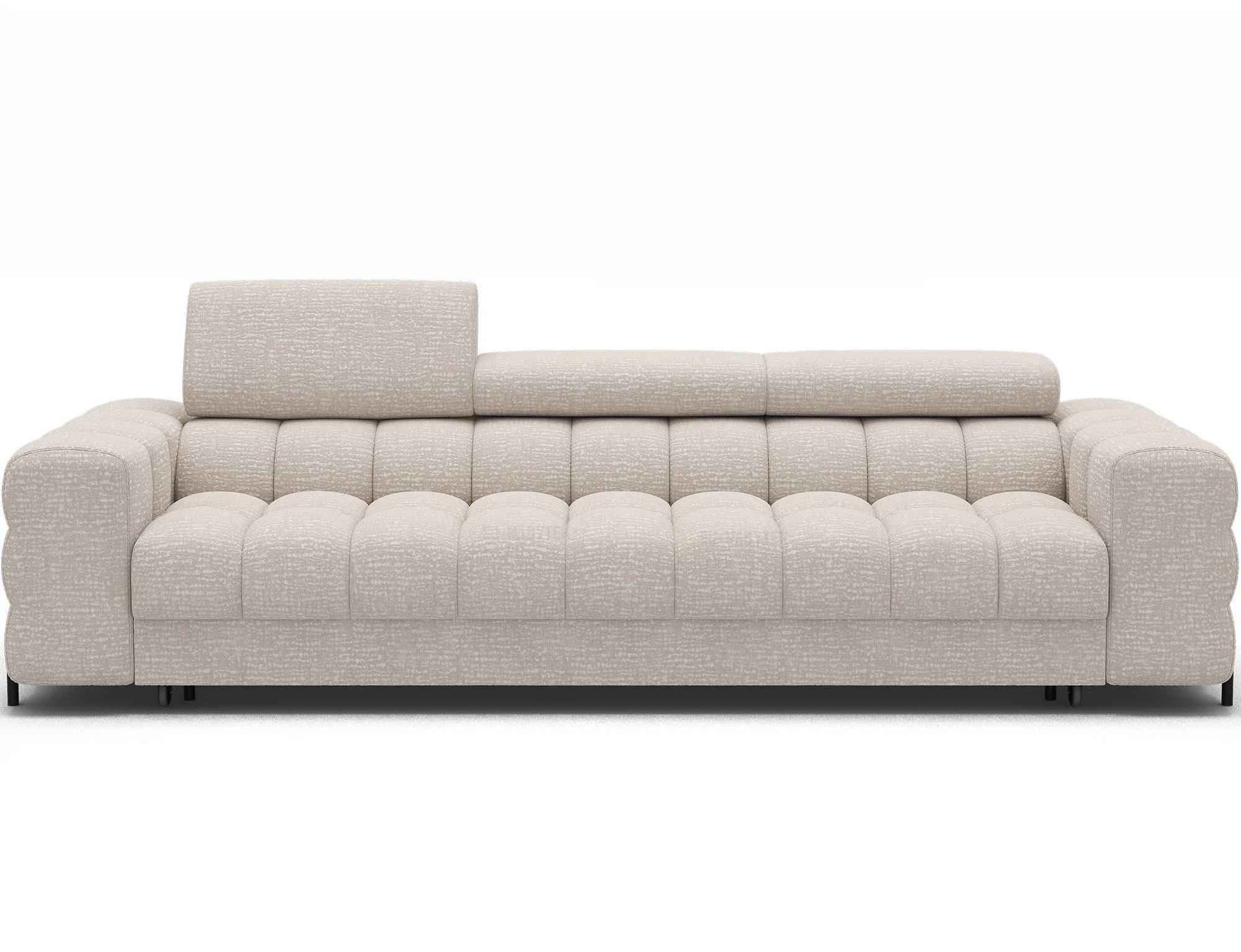 Tato moderní rozkládací pohovka Faristo je dokonalým spojením designu, pohodlí a praktičnosti. Luxusní čalounění s výrazným prošíváním dodává pohovce sofistikovaný vzhled, který skvěle zapadne do moderního i minimalistického interiéru. Díky snadnému rozkládacímu mechanismu se pohovka během chvilky promění v pohodlné lůžko pro příležitostné přespání o rozměru 123x200cm.Robustní konstrukce zajišťuje dlouhou životnost a stabilitu, zatímco měkké polstrování poskytuje maximální komfort při sezení i ležení. Výplň sezení je tvořena pružiny Faliste spolu s HR pěnou a polyuretanovou pěnou T30. Černé kovové nohy dodávají celkovému designu nádech lehkosti a krásně doplňují zajímavé prošívané čalounění. Tato pohovka je skvělou volbou do obývacího pokoje, menšího bytu i stylového apartmánu. Čalouněná je kvalitní látkou Amore 35.
