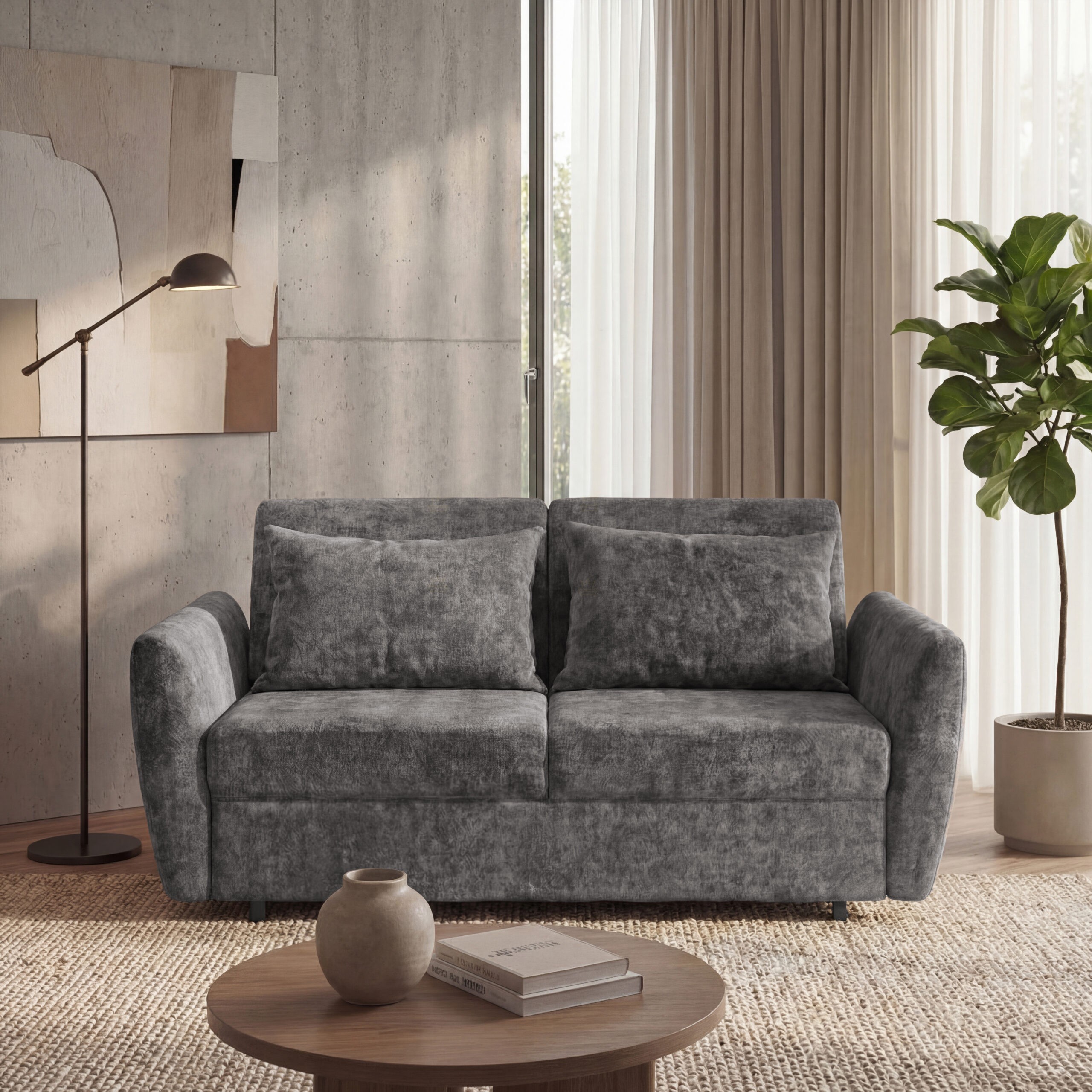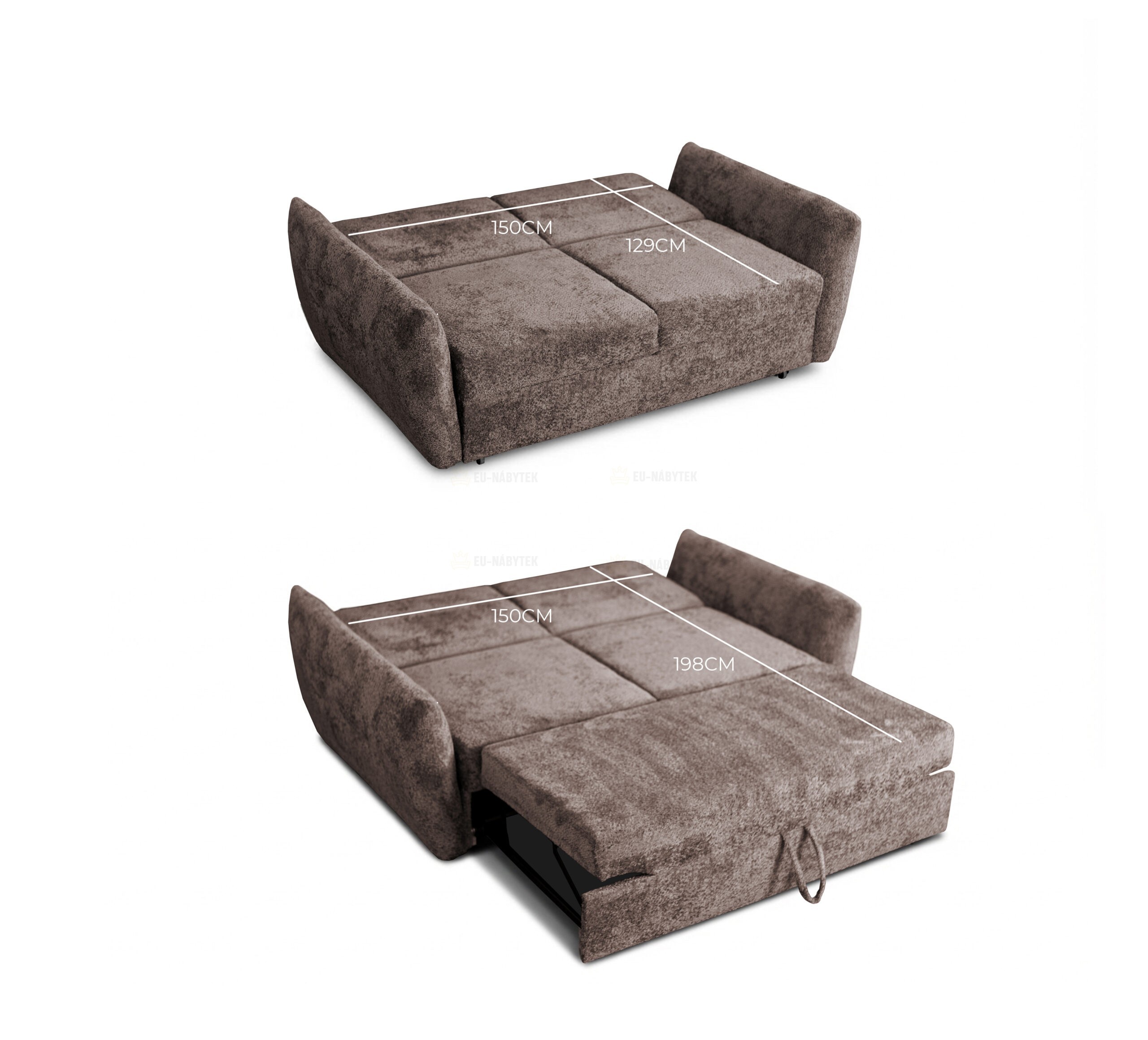 Moderní a pohodlná rozkládací pohovka Lenosi v elegantním provedení je ideální volbou do obývacího pokoje, menšího bytu i pokoje pro hosty. Díky kompaktním rozměrům šetří místo, ale zároveň nabízí dostatek prostoru pro každodenní sezení i příležitostné přespání. Pohovka má měkké, nadýchané opěrné polštáře (výška 53 cm a 44 cm), hluboký sedák o hloubce 50 cm a pohodlnou výšku sedu 46 cm. Po rozložení vznikne spací plocha o rozměru 150×198cm nebo 150x129cm. Čalouněná je kvalitní látkou Prime 33.