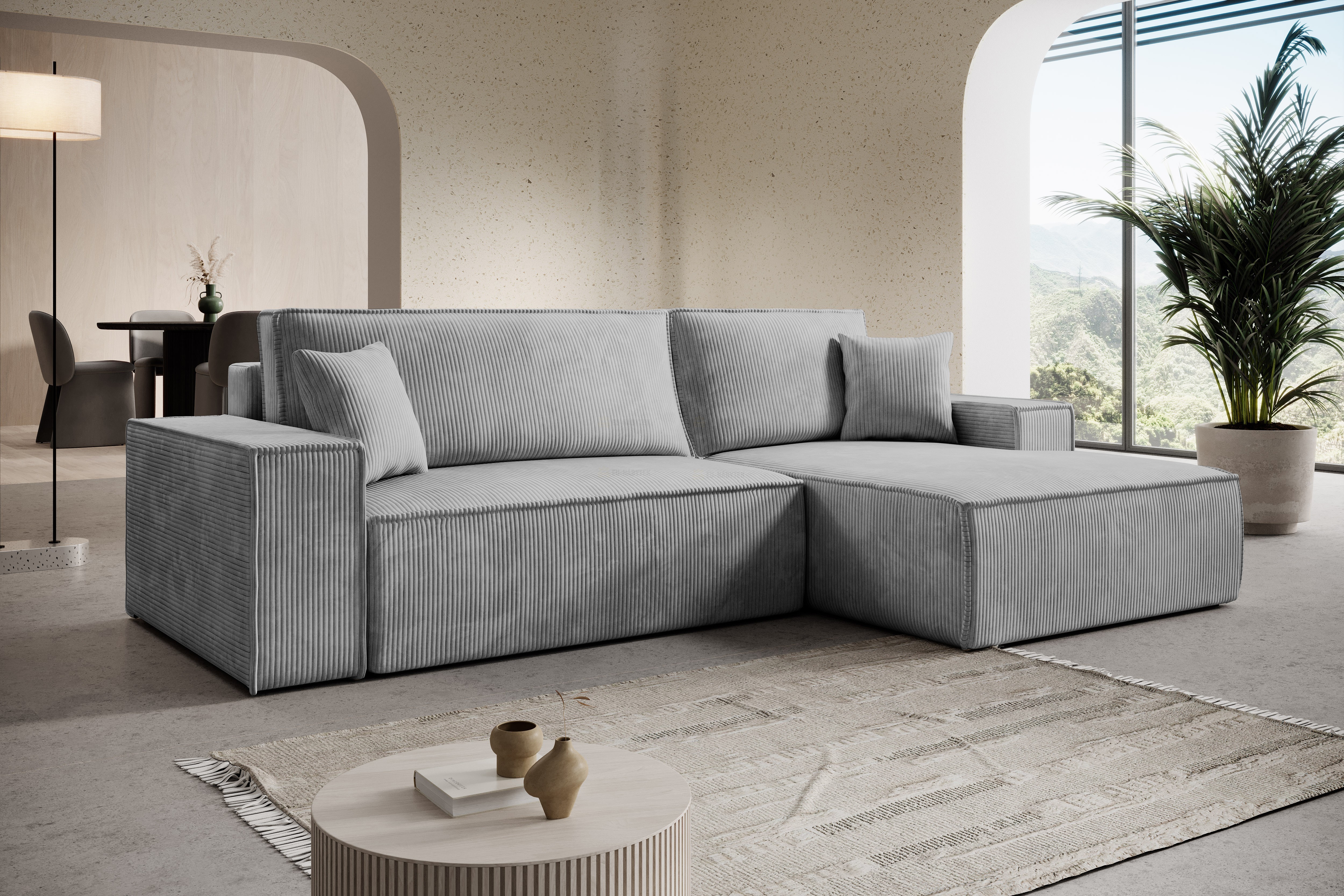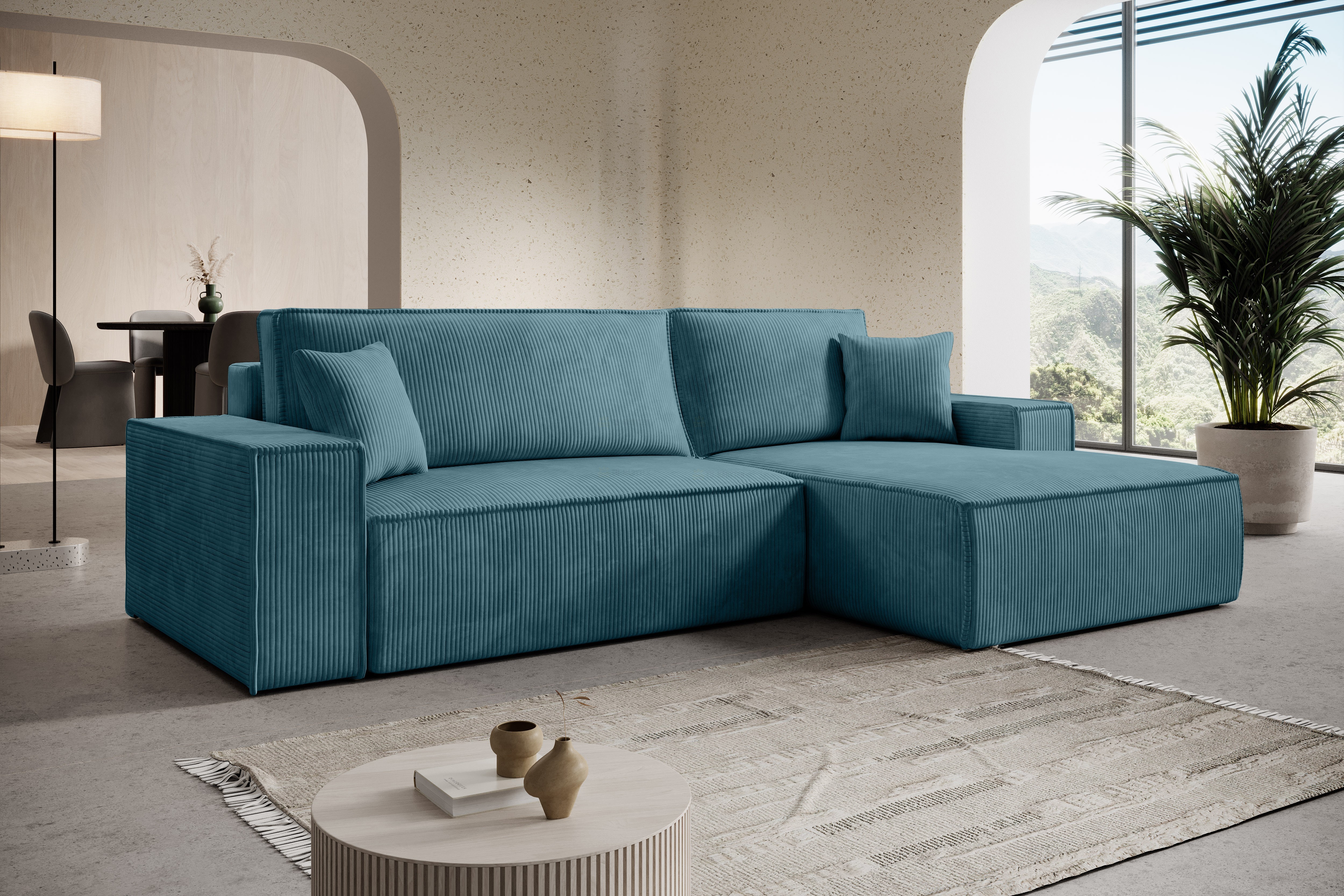Objevte pohodlí a nadčasový design v podobě této moderní rohové sedačky Adonis. Sedačka zaujme čistými liniemi, širokými područkami a výrazným manšestrovým potahem. Díky měkkému, strukturovanému povrchu působí útulně a zároveň stylově zapadne do moderního, skandinávského i minimalistického interiéru. Výplň je tvořena vysokoelastickou PUR pěnou spolu s pružinami Faliste. Prostorné sedáky a hluboké opěráky poskytují maximální komfort při každodenním odpočinku i při posezení s rodinou či přáteli. Samozřejmostí je automatický rozklad pro příležitostné přespání o rozměru 137x212cm. Tato rohová sedací souprava je skvělou volbou do obývacího pokoje, kde vytvoří dominantní a zároveň harmonický prvek interiéru. Čalouněná je kvalitní látkou Lincoln 75. V nabídce naleznete i další barevné varianty.