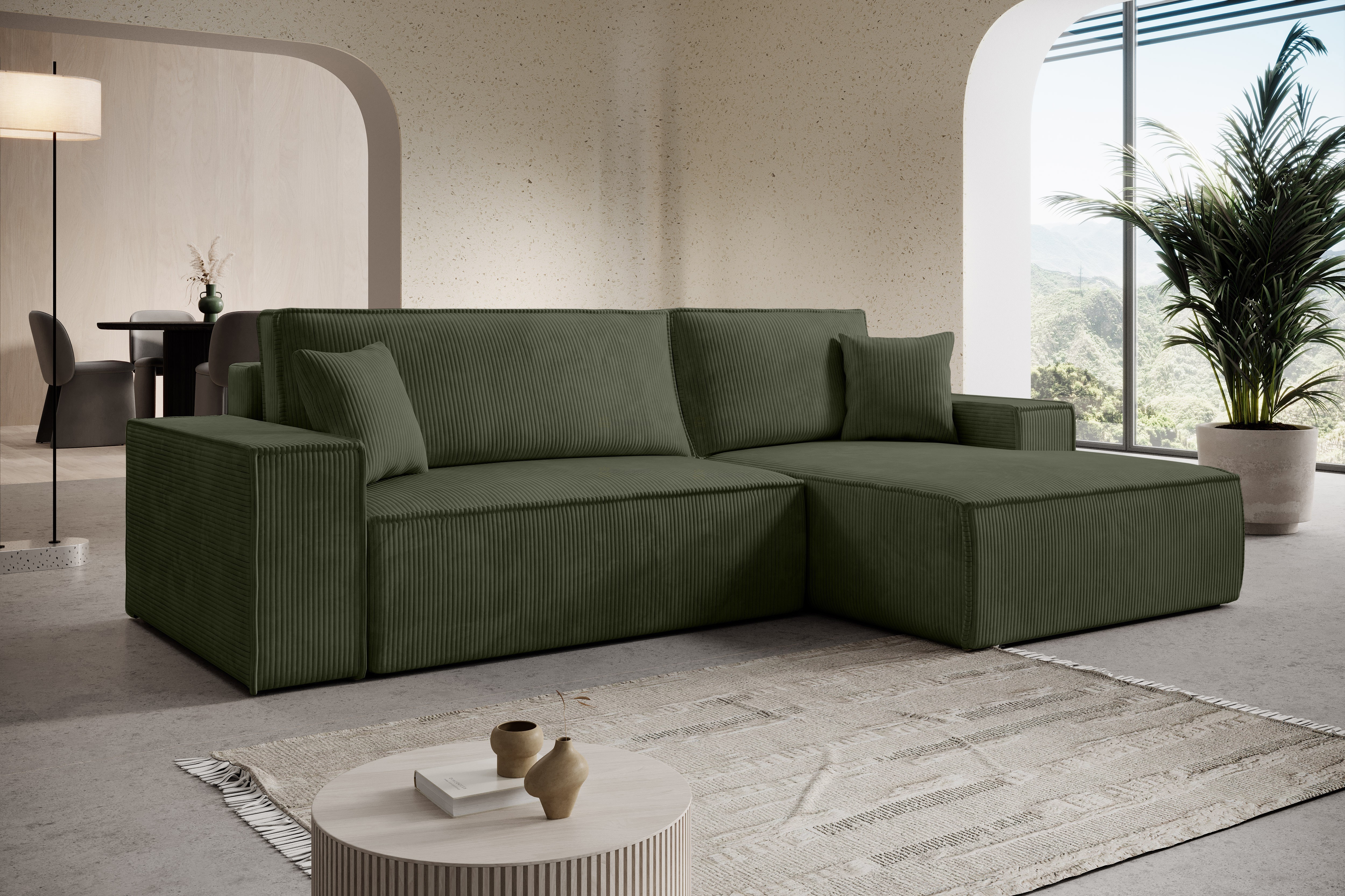 Objevte pohodlí a nadčasový design v podobě této moderní rohové sedačky Adonis. Sedačka zaujme čistými liniemi, širokými područkami a výrazným manšestrovým potahem. Díky měkkému, strukturovanému povrchu působí útulně a zároveň stylově zapadne do moderního, skandinávského i minimalistického interiéru. Výplň je tvořena vysokoelastickou PUR pěnou spolu s pružinami Faliste. Prostorné sedáky a hluboké opěráky poskytují maximální komfort při každodenním odpočinku i při posezení s rodinou či přáteli. Samozřejmostí je automatický rozklad pro příležitostné přespání o rozměru 137x212cm. Tato rohová sedací souprava je skvělou volbou do obývacího pokoje, kde vytvoří dominantní a zároveň harmonický prvek interiéru. Čalouněná je kvalitní látkou Lincoln 100. V nabídce naleznete i další barevné varianty.
