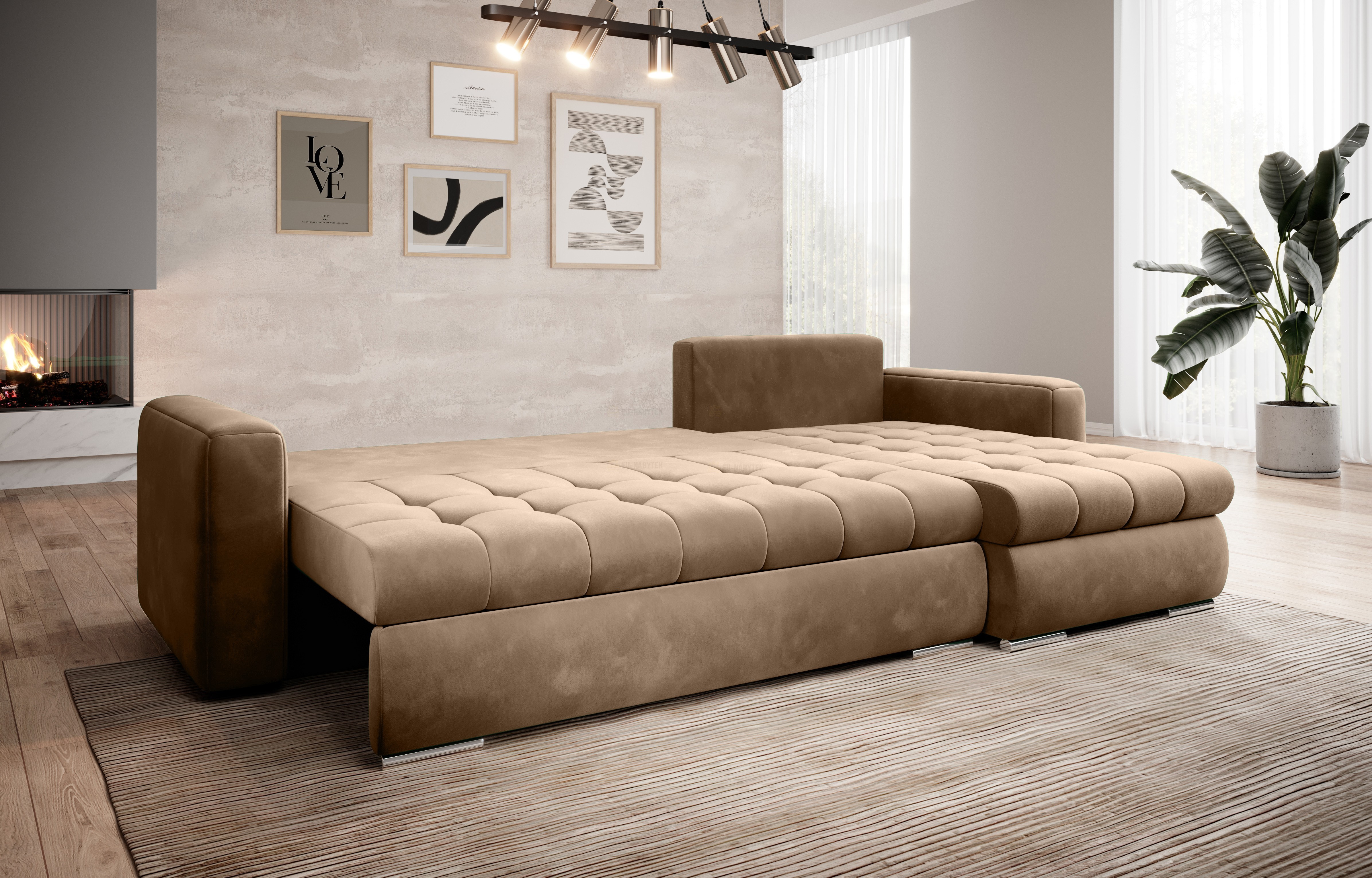 Elegantní rohová sedačka Canvia v nadčasovém designu je ideální volbou pro každodenní relaxaci i příležitostné přespání. Díky možnosti snadného rozkladu během chvilky vytvoříte pohodlné lůžko pro návštěvu o rozměru 128x202cm. Kvalitní výplň z pružin Bonell v kombinaci s PUR pěnou zajišťuje optimální podporu těla, vysoký komfort sezení i dlouhou životnost. Sedačka zaujme svým moderním vzhledem, čistými liniemi a výrazným prošíváním sedací části. Prostorné sedáky a opěrné polštáře poskytují maximální pohodlí při odpočinku s rodinou nebo přáteli. Rohové provedení efektivně využívá prostor a nabízí dostatek místa k sezení. Čalouněná je kvalitní hydrofobní látkou Monolith 77.