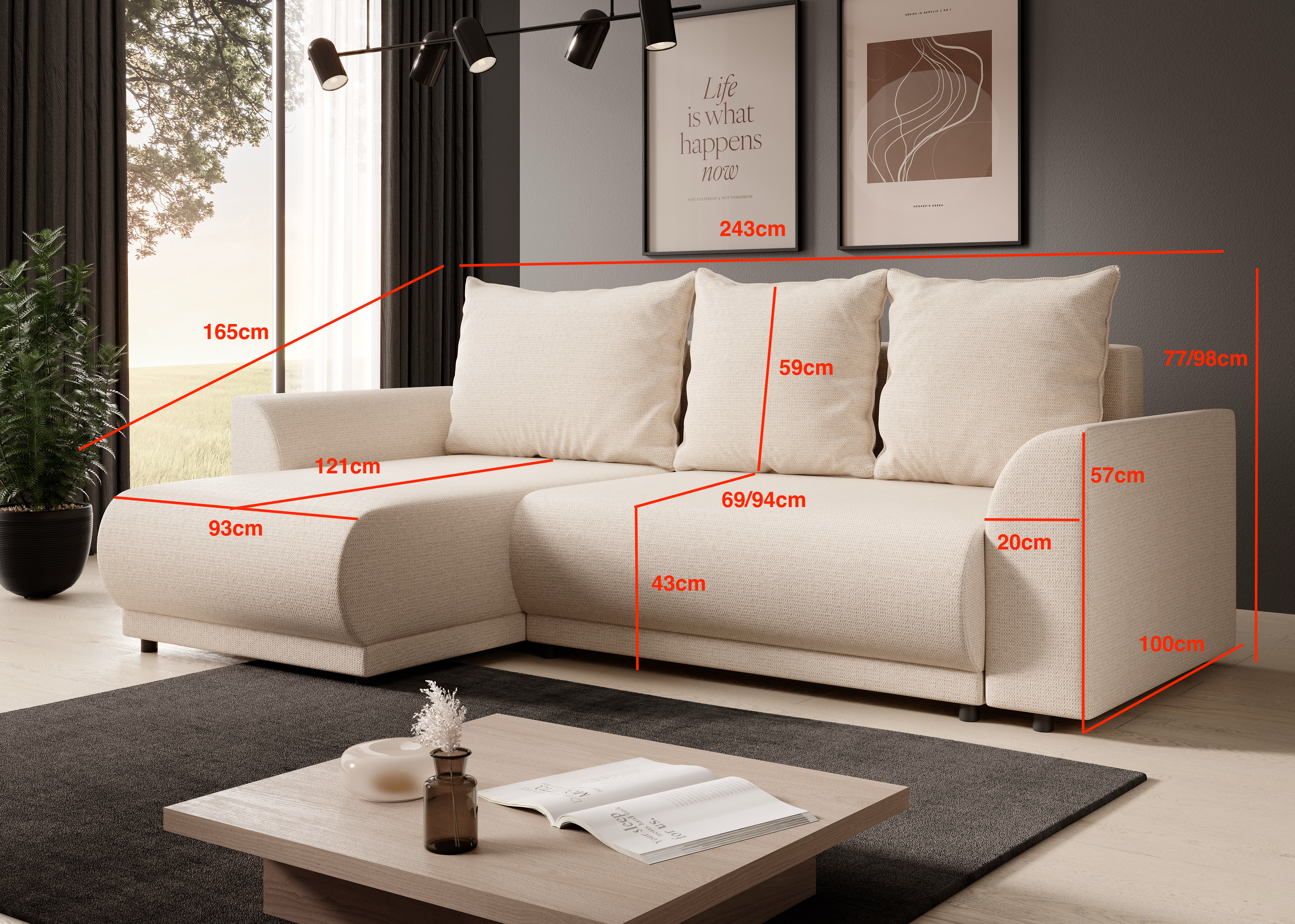 Stylová a prostorná rohová sedací souprava Limador v nadčasovém designu přináší maximální pohodlí i praktičnost do každého obývacího pokoje. Díky čistým liniím, jemnému čalounění a měkkým opěrným polštářům působí elegantně a zároveň útulně. Sedací souprava je vybavena rozkládacím mechanismem pro příležitostné spaní, takže během chvíle vytvoříte komfortní lůžko pro návštěvu o rozměru 140x223cm. O pohodlné sezení i ležení se stará kombinace kvalitní PUR pěny T30 a odolných pružin Faliste, které zajišťují optimální oporu těla, dlouhou životnost a tvarovou stálost. Čalouněná je kvalitní látkou Aragon 03.