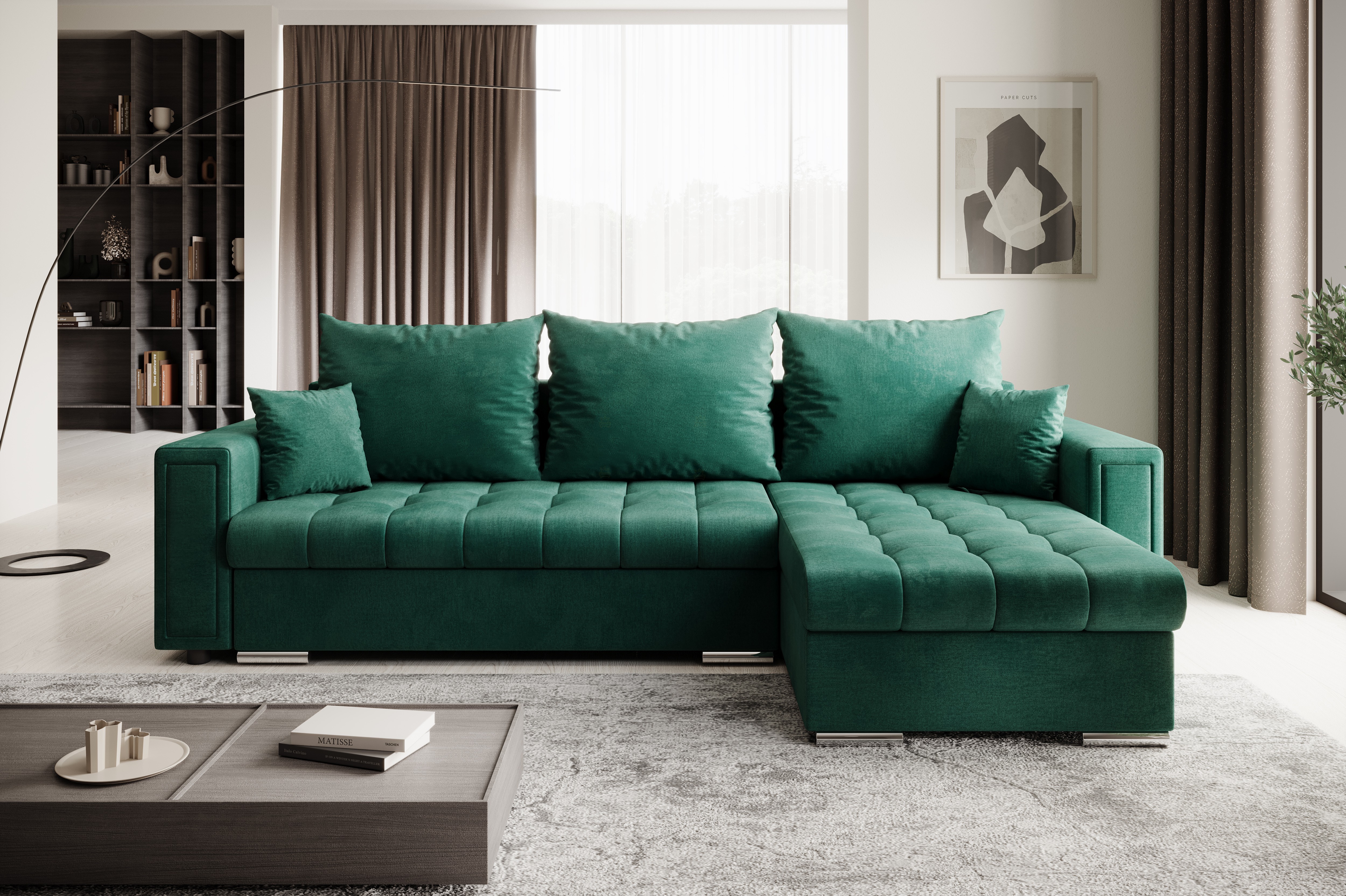 Moderní rohová sedačka Gaspa v elegantním provedení je ideální volbou pro stylový a pohodlný obývací pokoj. Díky nadčasovému designu s prošívaným sedákem a měkkým opěrným polštářům nabízí nejen atraktivní vzhled, ale i maximální komfort při každodenním používání. Sedačka je vybavena praktickou funkcí rozkladu, která během chvíle vytvoří prostorné lůžko pro příležitostné přespání o rozměru 128x202cm. Nechybí ani úložný prostor, ideální pro uschování lůžkovin nebo sezónních textilií. O pohodlí se stará kombinace PUR pěny a bonellových pružin, která zajišťuje optimální oporu těla, dlouhou životnost a komfortní sezení bez deformací. Snadno se přizpůsobí dispozici interiéru a stane se dominantním prvkem každého moderního domova. Čalouněná je kvalitní hydrofobní látkou Monolith 37.