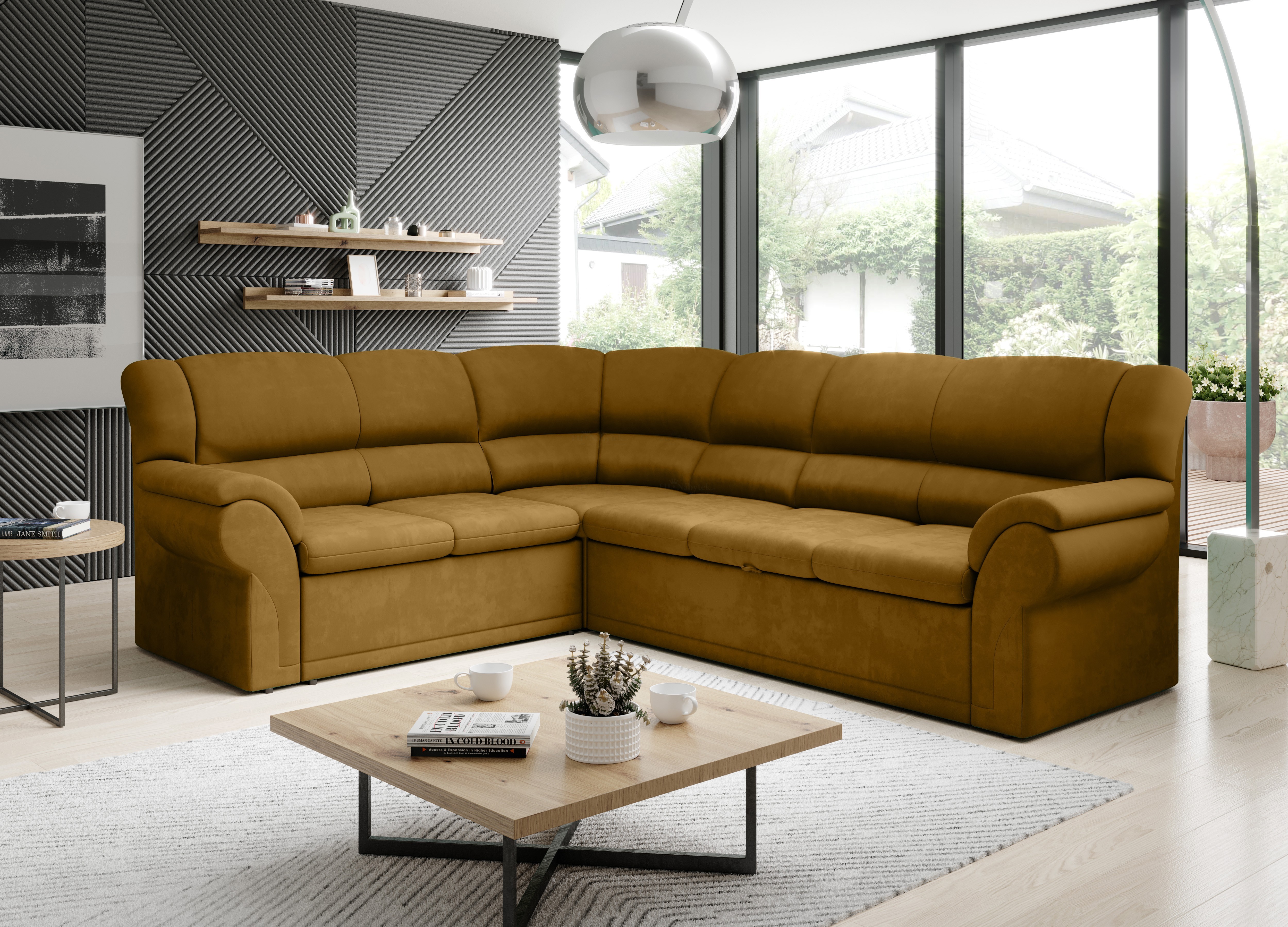 Rohová celočalouněná sedačka Alexia je extravagantní kousek, který bude apelovat na všechny, i ty nejnáročnější zákazníky. Sedačka obsahuje úložný prostor formou praktického výsuvného šuplíku a prostor pro příležitostné spaní. Po rozložení je spací plocha 205x120cm. Pohodlné sezení zaručují vlnovcové pružiny Faliste spolu s PUR pěnou T30. Alexia je čalouněna kvalitní látkou Vogue 13. V nabídce ji naleznete ve spoustě dalších barvách.