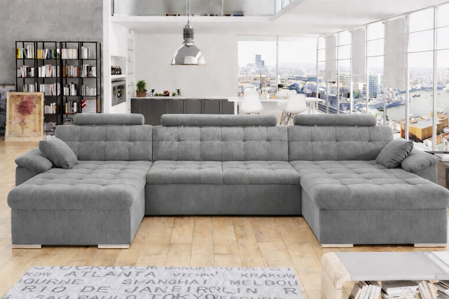 Prostorná rohová sedací souprava do U zaujme na první pohled svým elegantním designem, moderním prošíváním a praktickými záhlavníky. Díky velkorysému tvaru nabízí dostatek místa pro pohodlné sezení celé rodiny i přátel a stane se dominantou každého obývacího pokoje. Sedací část je vyplněna kvalitní PUR pěnou T30, která zajišťuje optimální komfort při sezení a zároveň dlouhou životnost. Pěna se vyznačuje dobrou pružností a odolností proti deformaci, takže si sedačka zachová svůj tvar i při každodenním používání. Široké sedáky a pohodlné opěrné části umožňují nejen klasické sezení, ale také příjemnou relaxaci při sledování televize, čtení nebo odpočinku. Sedačka je ideální volbou pro prostorné obývací pokoje, kde vytvoří komfortní místo pro rodinné chvíle i společenská setkání. Čalouněná je kvalitní hydrofobní látkou Monolith 37. Vyberte si ze spousty barev.