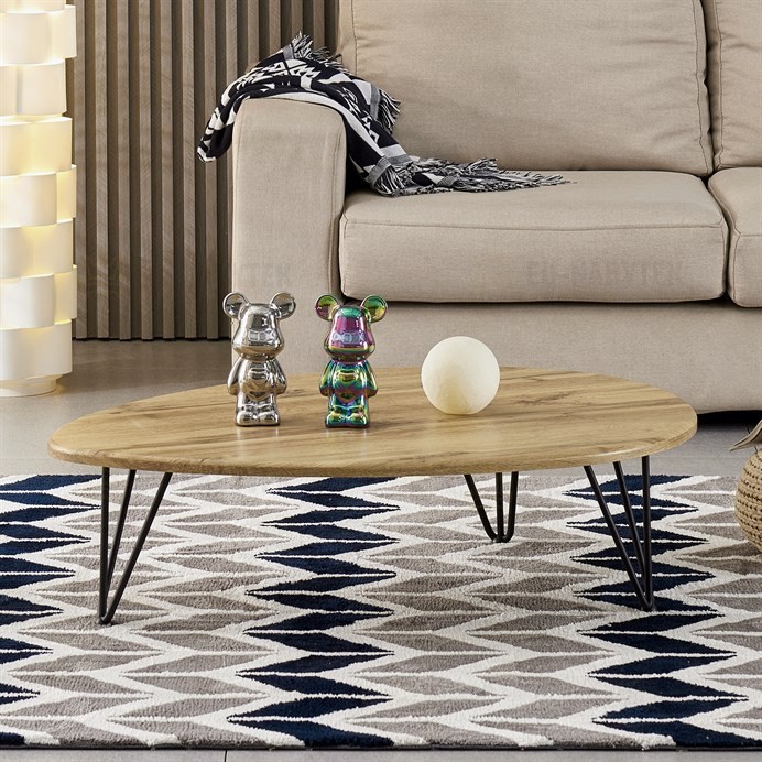 Vychutnejte si dynamickou souhru mezi tmavou kovovou trojnohou podnoží stolu a jeho hnědou deskou. Tento elegantní kontrast umocňuje výraznou osobnost stolu a hladce spojuje odolnost s luxusním vzhledem. Černá barva nohou zajišťuje velitelskou přítomnost, která posiluje půvab stolu a zároveň slouží jako stabilní základ.