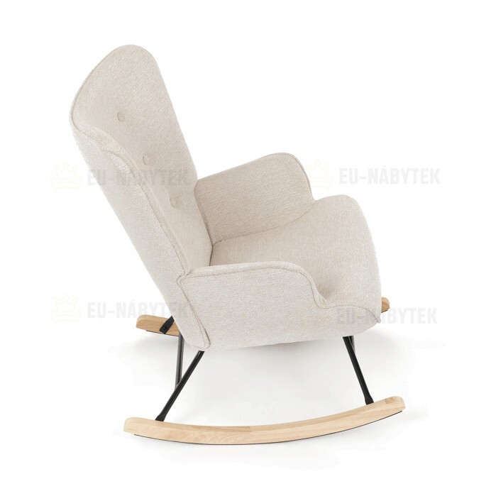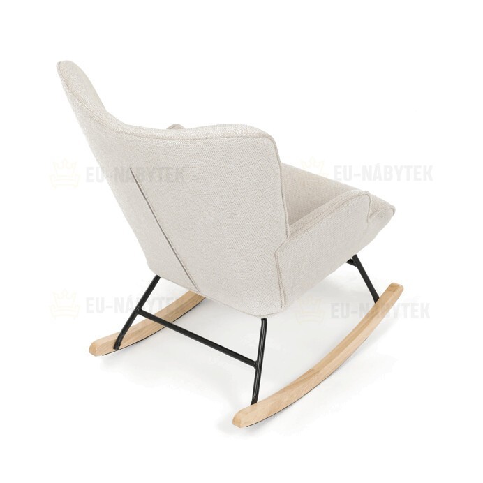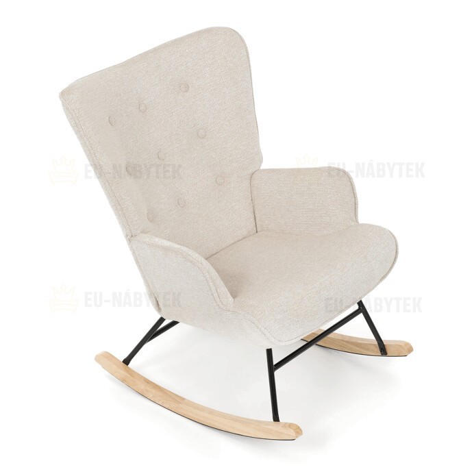Houpací křeslo s béžovým čalouněním z prémiové látky nabízí pohodlné posezení s jemnou texturou, která je příjemná na dotek a snadno se udržuje. Sedák a opěradlo jsou ergonomicky tvarované a doplněné o pevné područky pro maximální komfort. Stabilní nohy jsou vyrobeny z kombinace černého kovu a masivního kaučukovníku, což zajišťuje pevnost a dlouhou životnost. Houpací mechanismus umožňuje plynulé a tiché houpání, které přispívá k relaxaci. Křeslo je vhodné do moderních i klasických interiérů, jeho rozměry a nosnost odpovídají běžným standardům pro pohodlné sezení.
