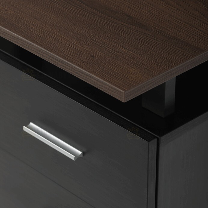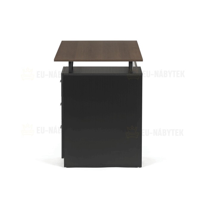 Pracovní stůl APC-3218 OAK kombinuje pevnou kovovou podnož s deskou z melaminu v dekoru ořechu, která je opatřena matnou povrchovou úpravou pro snadnou údržbu a zvýšenou odolnost proti poškození. Konstrukce stolu je navržena tak, aby poskytovala stabilní a komfortní pracovní plochu o rozměrech 120x60 cm při výšce 75 cm. Součástí je praktický úložný prostor tvořený třemi zásuvkami s kovovými úchytkami v černém provedení, které umožňují organizaci kancelářských potřeb přímo u pracovního místa. Kovová podnož zajišťuje stabilitu a dlouhou životnost, zatímco kombinace hnědého ořechového dekoru a černých prvků dodává stolu moderní a profesionální vzhled vhodný do kanceláří i domácích pracovních koutů. Nosnost stolu odpovídá běžným požadavkům na pracovní nábytek, což zaručuje jeho funkčnost i při každodenním používání.