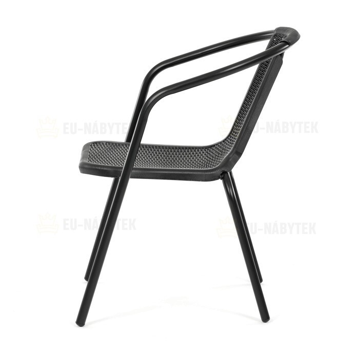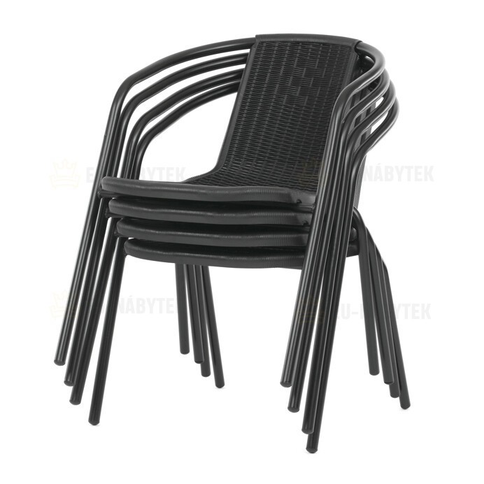 Zahradní židle v černém provedení kombinuje pevný kovový rám s odolným plastovým sedákem a opěradlem, které jsou navrženy pro snadnou údržbu a dlouhou životnost. Díky stohovatelnému designu umožňuje efektivní skladování a šetří místo při nepoužívání. Zaoblené opěrky rukou a ergonomicky tvarovaný sedák zajišťují pohodlné posezení během venkovních aktivit. Stabilní kovové nohy jsou opatřeny plastovými krytkami, které chrání podlahu a zvyšují stabilitu. Černá barva dodává židli univerzální vzhled vhodný pro různé typy zahradního nábytku.