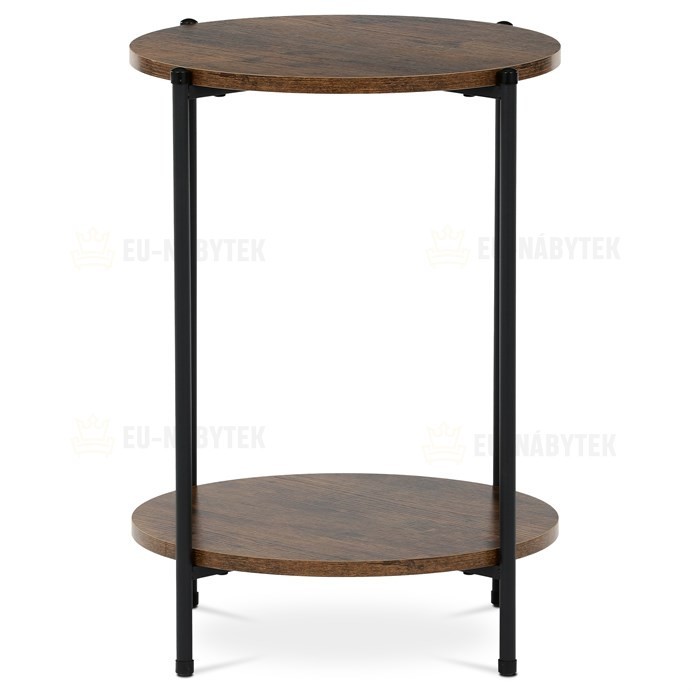 Moderní přístavný stolek značky Autronic spojuje minimalistický design a funkčnost. Kulaté desky v dekoru starého dřeva dodávají stolku přírodní eleganci, zatímco černě lakovaný kovový rám zajišťuje stabilitu a odolnost. Dvě praktické police nabízí dostatek prostoru pro uložení dekorací, knih nebo šálku kávy. Díky svému univerzálnímu vzhledu je tento stolek ideální volbou do obývacího pokoje, ložnice nebo kanceláře. Vneste do svého interiéru styl a praktičnost s tímto nadčasovým kouskem!