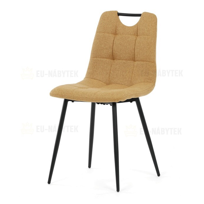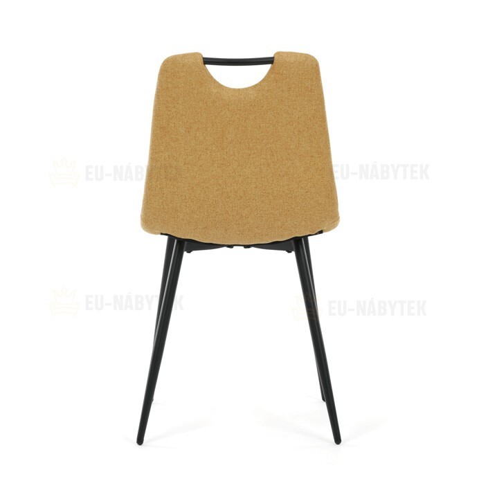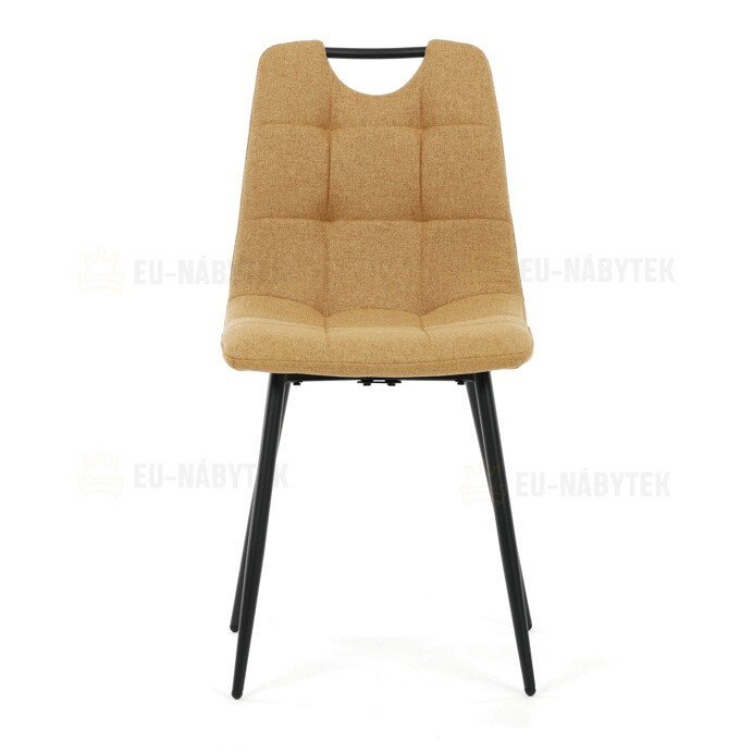 Jídelní židle s označením DCL-V2017 YEL2 kombinuje moderní design s praktickými vlastnostmi. Sedák a opěradlo jsou potaženy žlutou látkou, která je snadno udržovatelná a doplněná designovým prošitím pro zvýraznění estetického dojmu. Černě matné kovové nohy zajišťují stabilitu a pevnost celé židle, zatímco integrované madlo v horní části opěradla usnadňuje manipulaci a přenášení. Židle nemá područky ani otočný mechanismus, což podporuje jednoduchost a kompaktnost. Díky kvalitnímu zpracování a použitým materiálům je vhodná pro každodenní použití v jídelnách i komerčních prostorách.