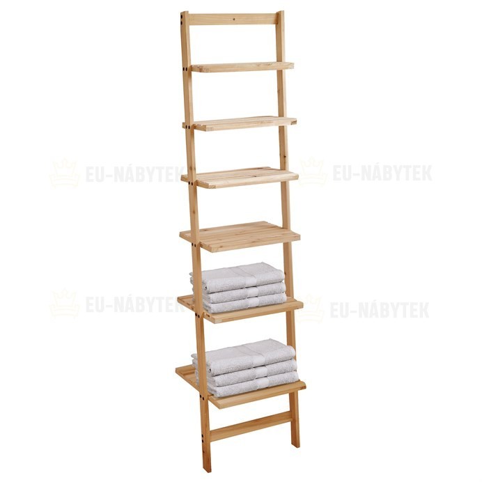 Žebřík je vybaven šesti prostornými policemi, které poskytují dostatek místa pro vaše oblíbené knihy, dekorativní předměty nebo další drobnosti. Díky svému designu je vhodný do obývacích pokojů, ložnic nebo kanceláří, kde dodává prostoru lehkost a moderní vzhled.