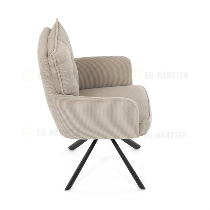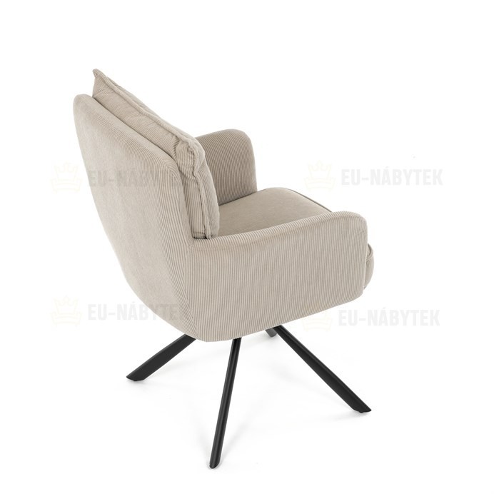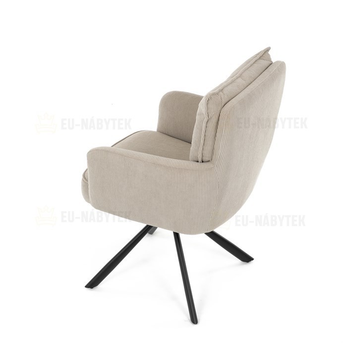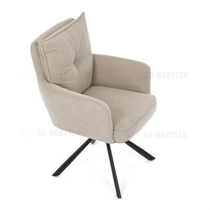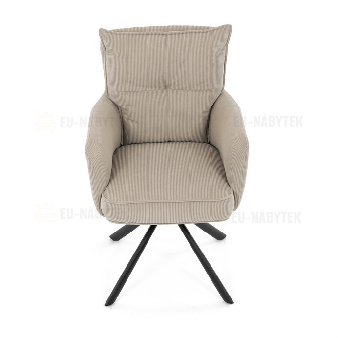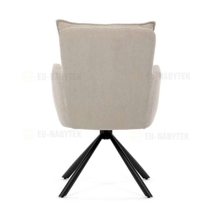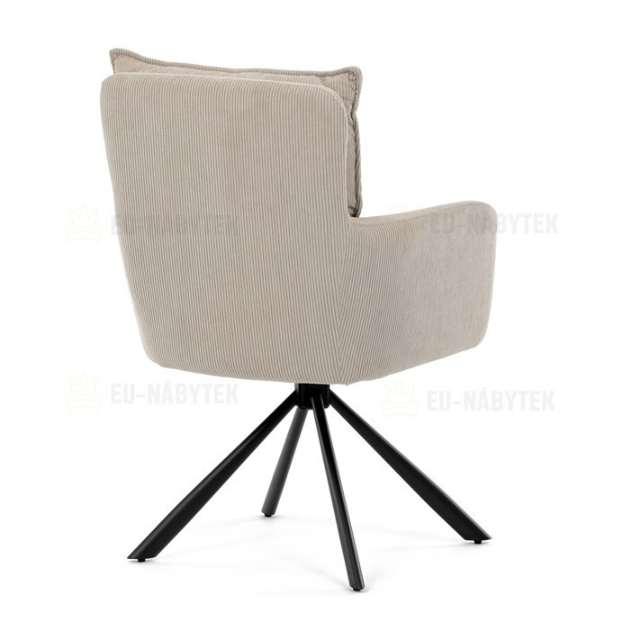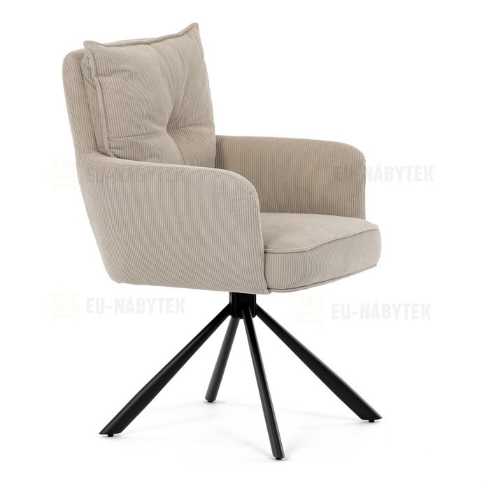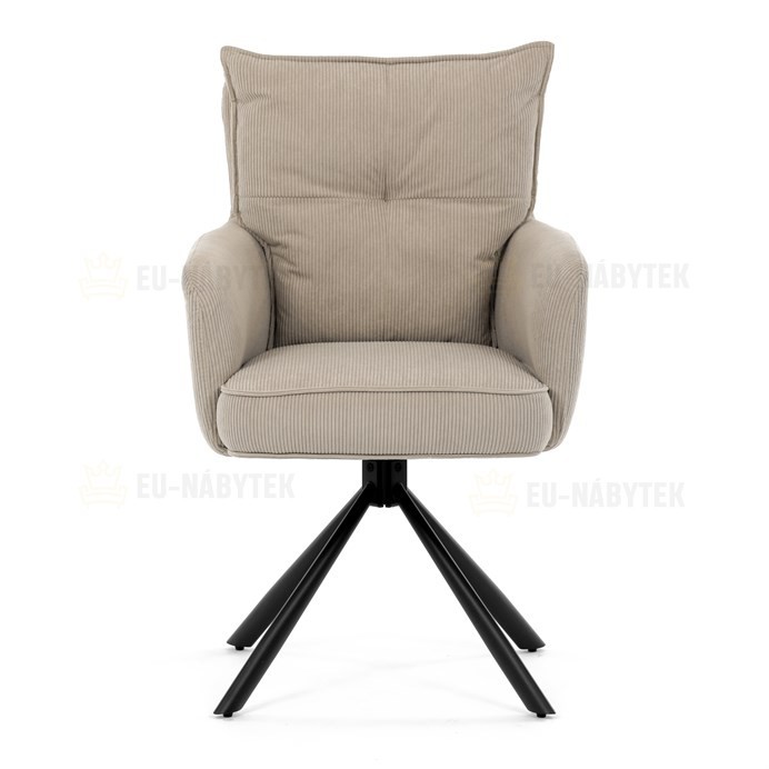 Jídelní židle HC-X1128 LAN2 od značky Autronic nabízí komfortní sezení díky vysokému polstrování sedáku a opěradla potaženému lanýžovou látkou manšestr v béžovém odstínu. Sedák je vybaven taštičkovými pružinami, které zvyšují pohodlí a přizpůsobivost při sezení. Židle disponuje otočnou funkcí s vratným mechanismem umožňujícím otáčení o 180°, což usnadňuje pohyb a přístup k jídelnímu stolu. Područky jsou součástí čalouněné části, která je pevně spojena s kovovou podnoží v černém matném provedení, jež zajišťuje stabilitu a dlouhou životnost. Díky kombinaci kvalitních materiálů a funkčních prvků je židle vhodná pro moderní jídelní prostory s důrazem na pohodlí i design.