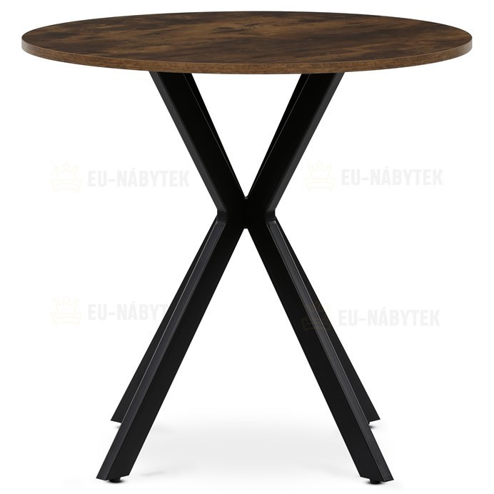 Jídelní kulatý stůl HT-F4108 OLW značky Autronic vyniká kombinací přírodní MDF desky s dekorem starého dřeva a pevné konstrukce z černě lakovaného kovu. Deska o průměru 80 cm a výšce 75 cm je opatřena ABS hranou, která chrání okraje před poškozením a zvyšuje odolnost proti opotřebení. Kovová podnož je tvořena čtyřmi zkříženými nohami, které zajišťují stabilitu a zároveň dodávají moderní industriální vzhled. Rektifikační nohy umožňují vyrovnání stolu na nerovném povrchu, což přispívá k jeho praktičnosti a komfortu při používání. Povrch desky s dekorem old wood přináší autentický přírodní vzhled, který se hodí do různých interiérů od rustikálních po moderní. Celková konstrukce stolu je navržena tak, aby poskytovala dostatek prostoru pro pohodlné stolování a zároveň byla snadno udržovatelná. Stůl je ideální volbou pro menší jídelny či kuchyňské kouty, kde oceníte kombinaci estetické hodnoty a funkčnosti.