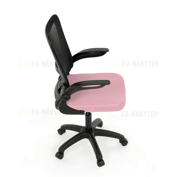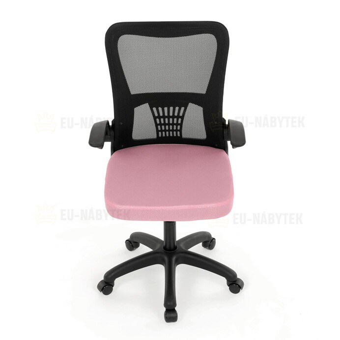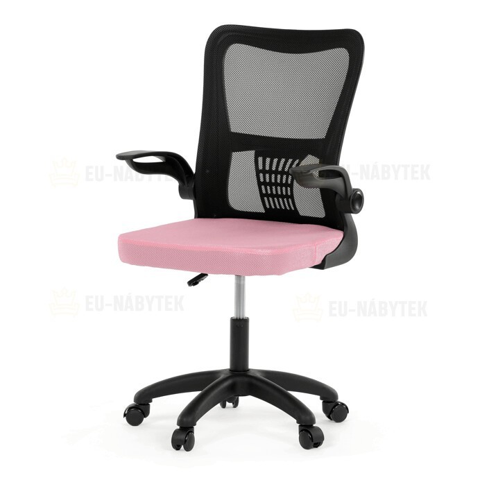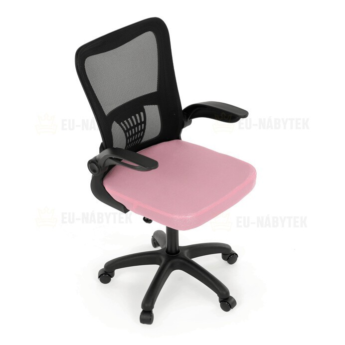 Kancelářská židle s označením KA-K2006 PINK kombinuje moderní design s funkčností vhodnou pro každodenní práci. Opěrák je vyroben z černé prodyšné síťoviny, která zajišťuje optimální cirkulaci vzduchu a podporuje pohodlí při delším sezení. Sedák je čalouněný růžovou látkou s dostatečnou výplní pro komfortní posed. Odklápěcí plastové područky umožňují snadné přizpůsobení pracovnímu prostoru a zvyšují flexibilitu používání. Houpací mechanismus s možností nastavení výšky sedáku přispívá k ergonomii a individuálnímu nastavení. Plastový kříž zajišťuje stabilitu a kolečka jsou určena pro tvrdé povrchy, což umožňuje snadný pohyb bez poškození podlahy. Židle je vhodná pro uživatele hledající kombinaci praktičnosti a svěžího barevného akcentu.