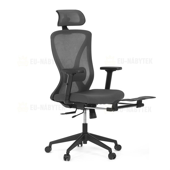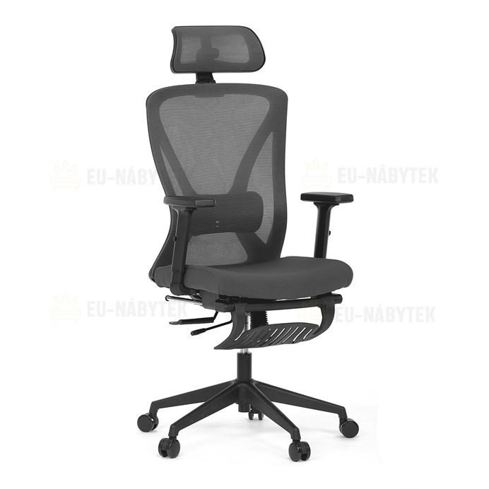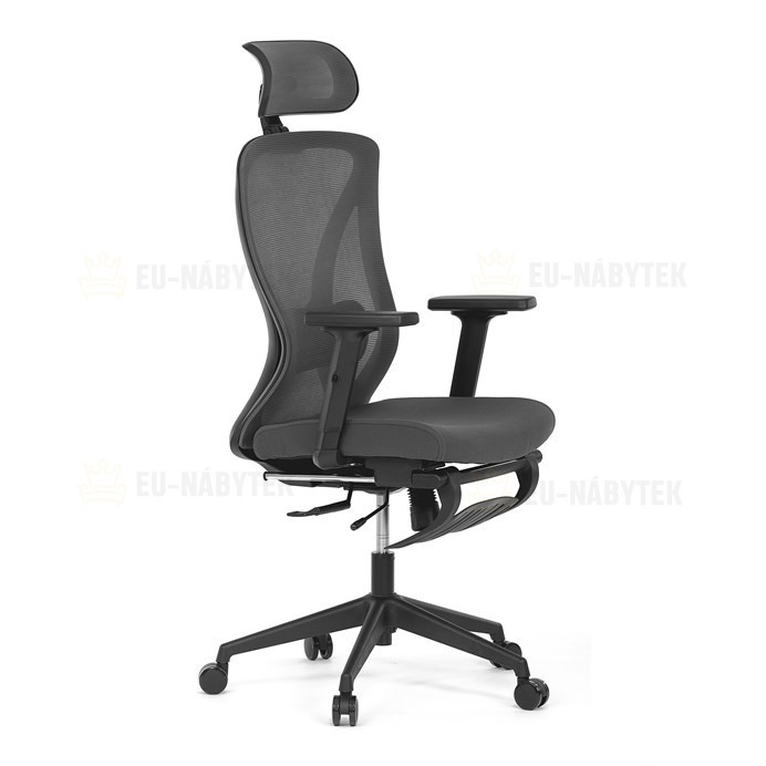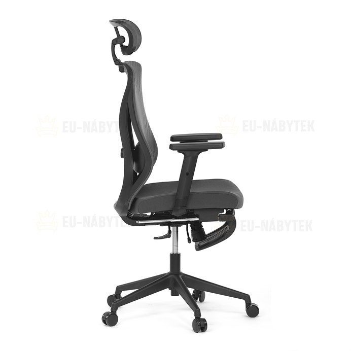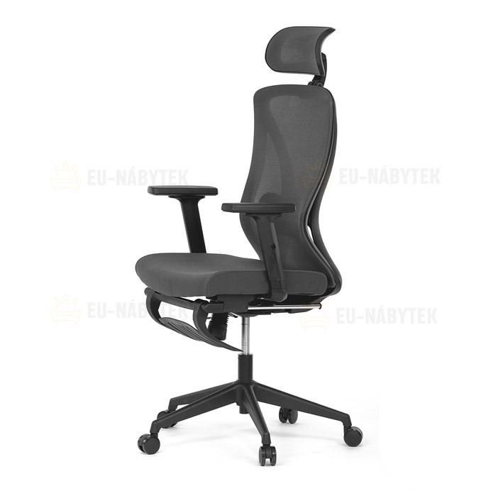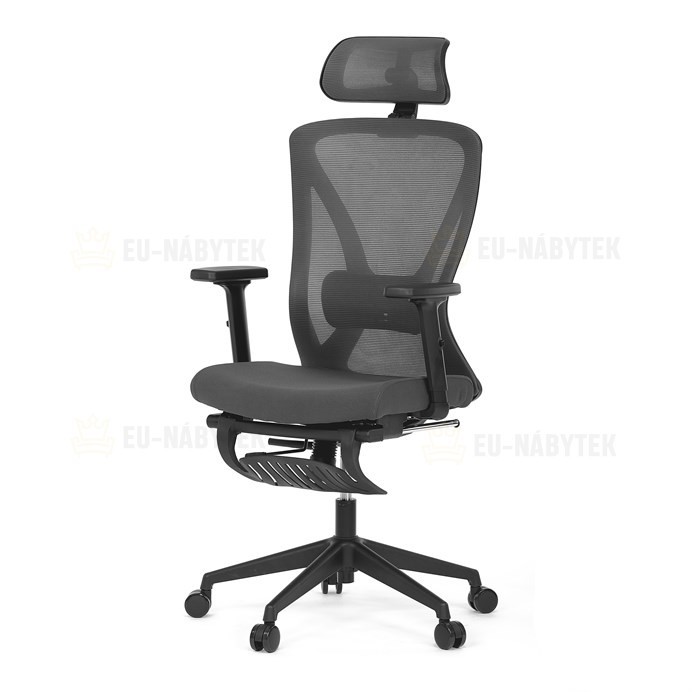 Kancelářská židle s označením KA-S257 GREY nabízí moderní řešení pro pohodlné a ergonomické sezení. Opěradlo je potažené šedou prodyšnou síťovinou, která zajišťuje optimální cirkulaci vzduchu, a je vybaveno nastavitelnou bederní opěrkou pro podporu spodní části zad. Sedák s posuvnou funkcí umožňuje přizpůsobení hloubky sezení podle individuálních potřeb. Židle disponuje 3D nastavitelnou opěrkou hlavy a praktickou opěrkou nohou, která přispívá k uvolnění a lepšímu komfortu během delší práce. Područky typu 2D lze nastavit ve dvou směrech, což umožňuje lepší přizpůsobení polohy rukou. Stabilní plastový kříž je osazen kolečky vhodnými pro různé typy podlah. Synchronní mechanismus zajišťuje plynulý pohyb opěradla v závislosti na pohybu uživatele, což podporuje správné držení těla během sezení.