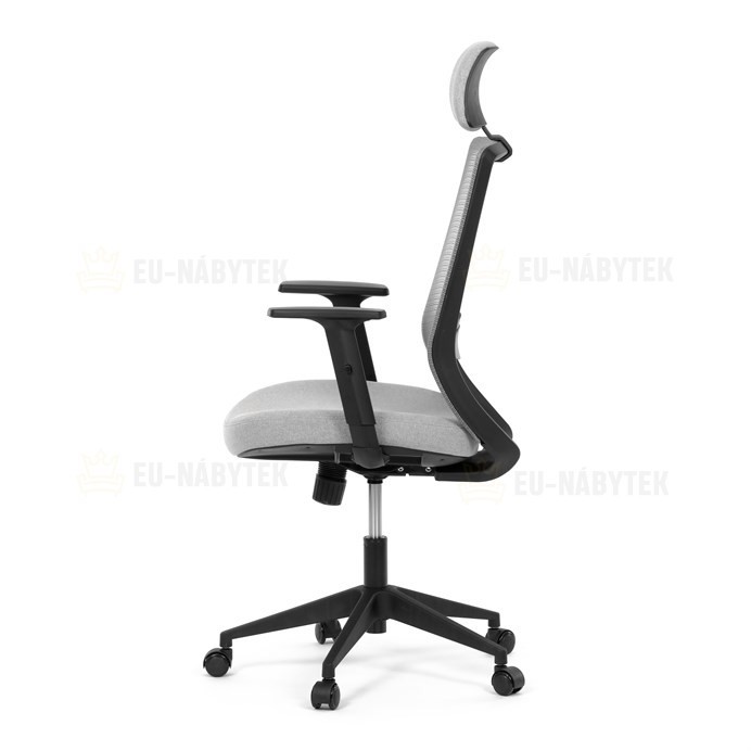 Kancelářská židle s označením KA-V3329 GREY kombinuje moderní šedou MESH síťovinu na opěradle s příjemnou šedou látkou na sedáku, což zajišťuje optimální prodyšnost i komfort během dlouhého sezení. Plastový kříž poskytuje stabilní základnu, která je zároveň lehká a snadno udržovatelná. Synchronní mechanismus umožňuje plynulé nastavení opěradla v závislosti na pohybu těla, čímž podporuje ergonomické držení těla. Výškově nastavitelná bederní opěrka a opěrka hlavy přispívají k individuálnímu přizpůsobení a lepší podpoře páteře. Jednosměrně nastavitelné 1D područky doplňují funkčnost židle, zatímco kolečka jsou vhodná pro tvrdé povrchy, což zajišťuje snadnou mobilitu bez poškození podlahy.