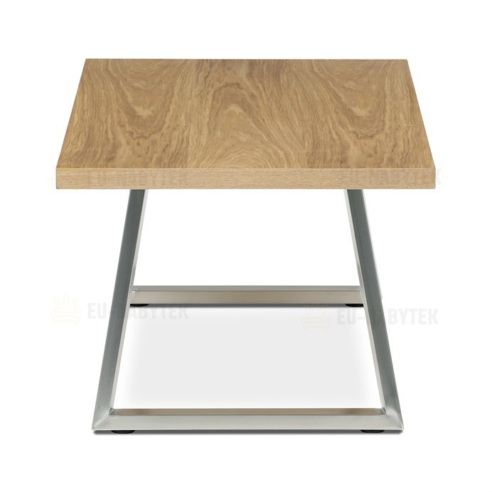 Konferenční stůl značky Autronic v moderním designu, který skvěle zapadne do každého interiéru. Jeho deska je vyrobena z kvalitní dýhy s dekorem dubu, což dodává stolu elegantní a přírodní vzhled. Nohy jsou vyrobeny z broušeného nerezu. Stolek je ideální pro každodenní posezení v rodinném kruhu nebo s přáteli.